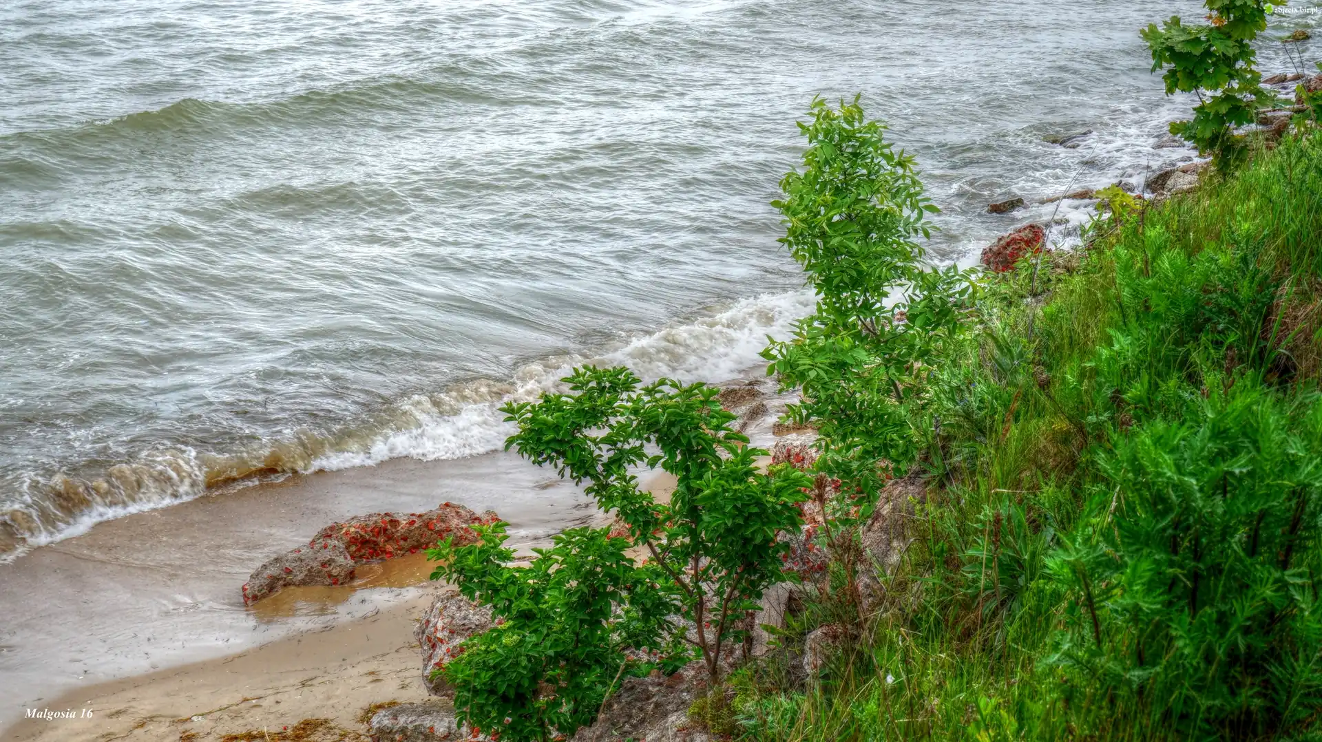Zdjęcie Morze, Woda, Fale, Wybrzeże, Plaża, Rośliny, HDR