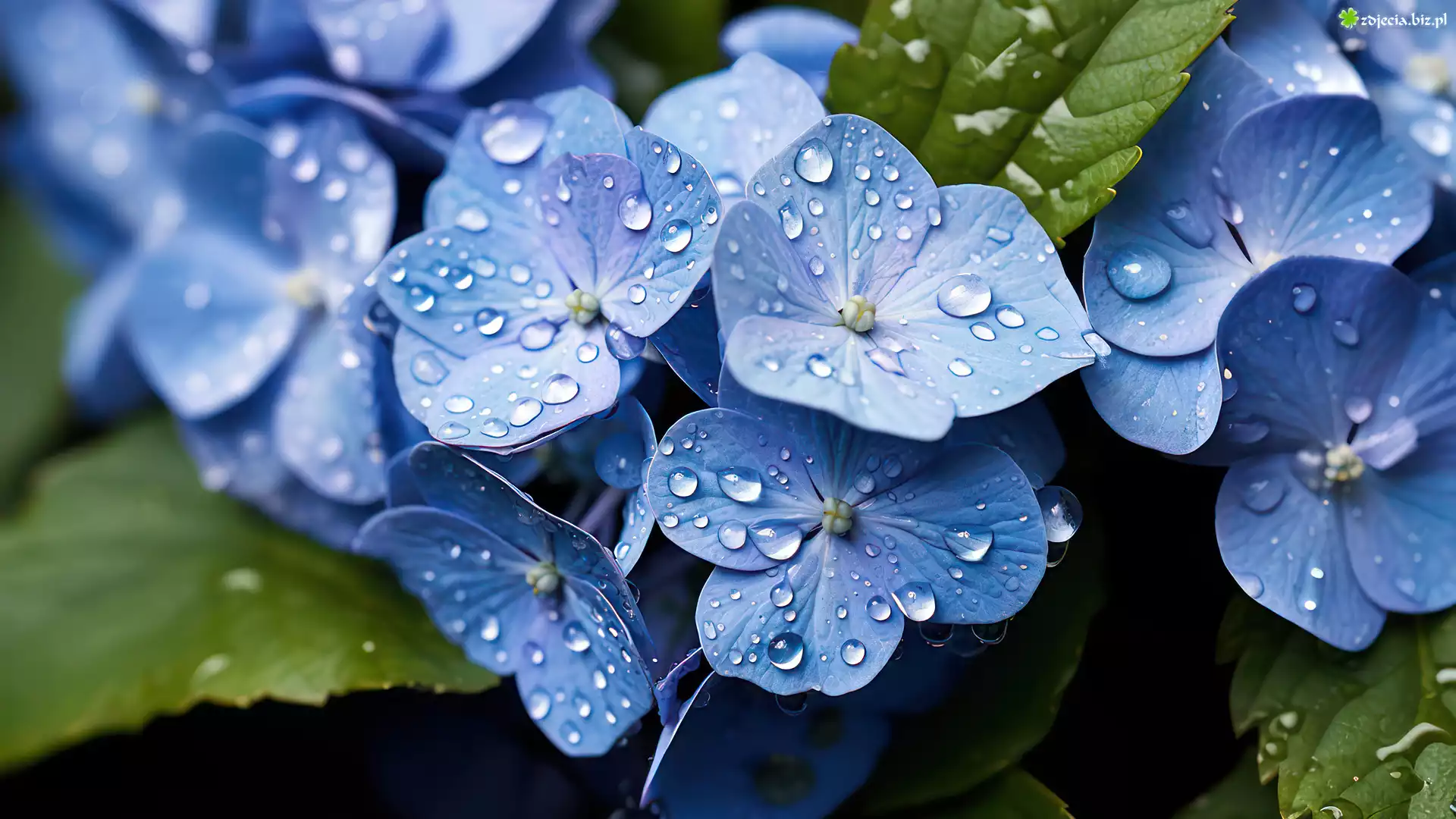 Zdjęcie Niebieskie, Hortensje, Krople, Woda