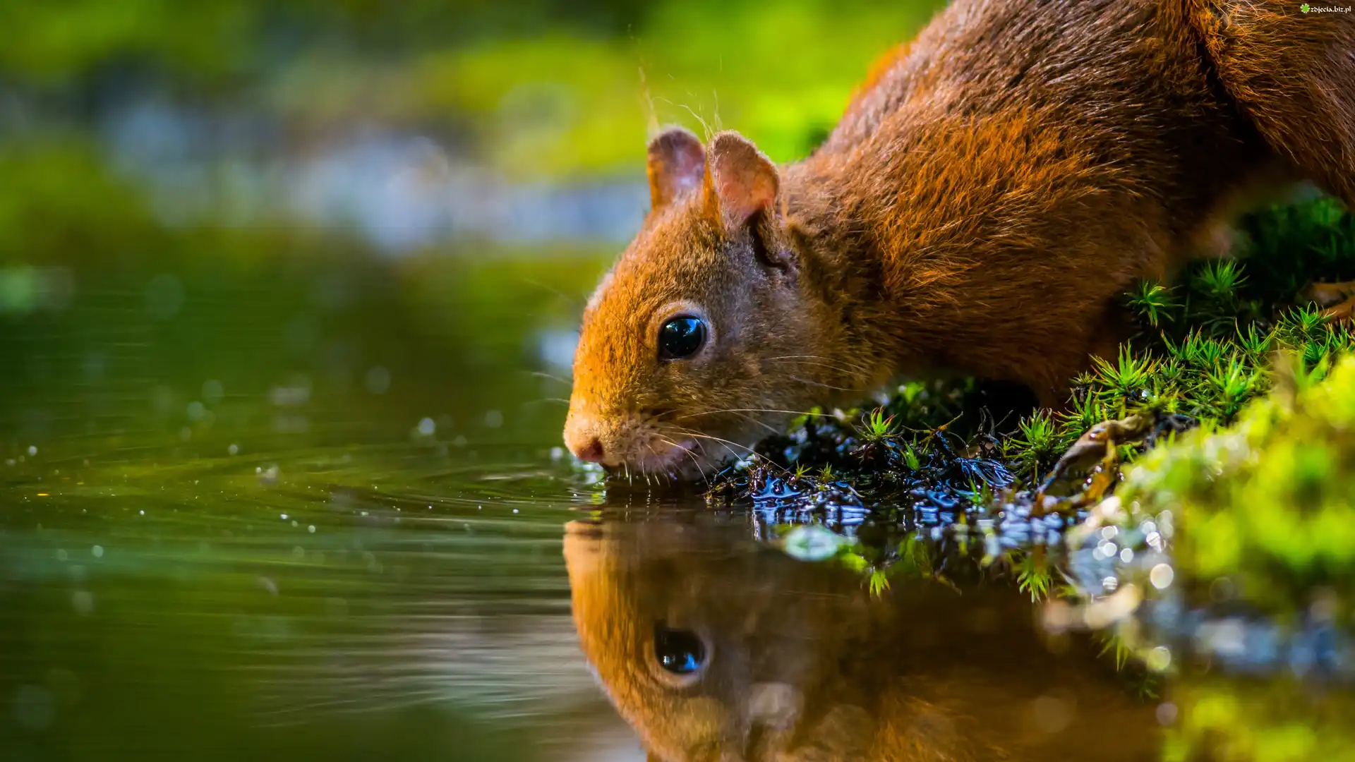 Zdjęcie Wiewiórka, Woda, Roślinki