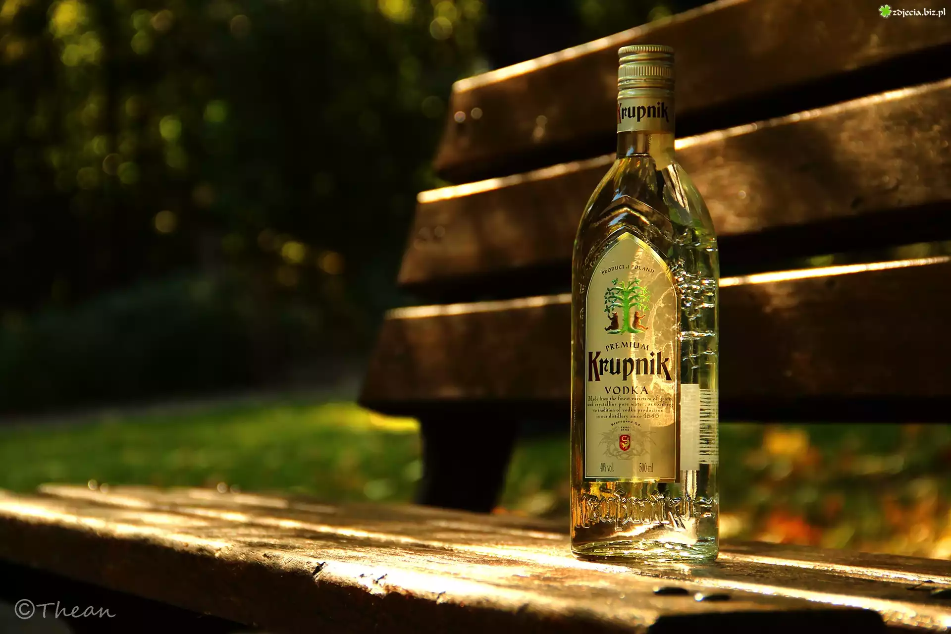 Zdjęcie Wódka, Polska, Krupnik, Butelka, Ławka