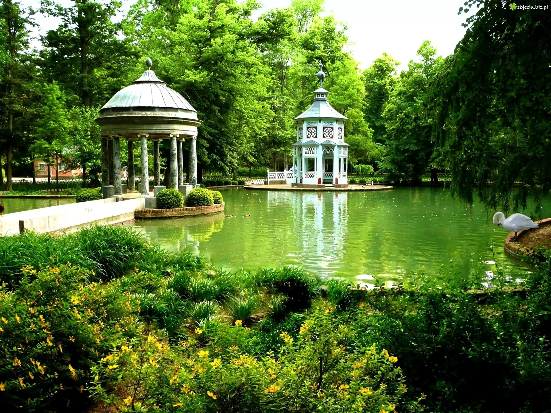 Zdjęcie Oczko, Wodne, Altany, Łabędzie, Kaczki, Park, Hiszpania