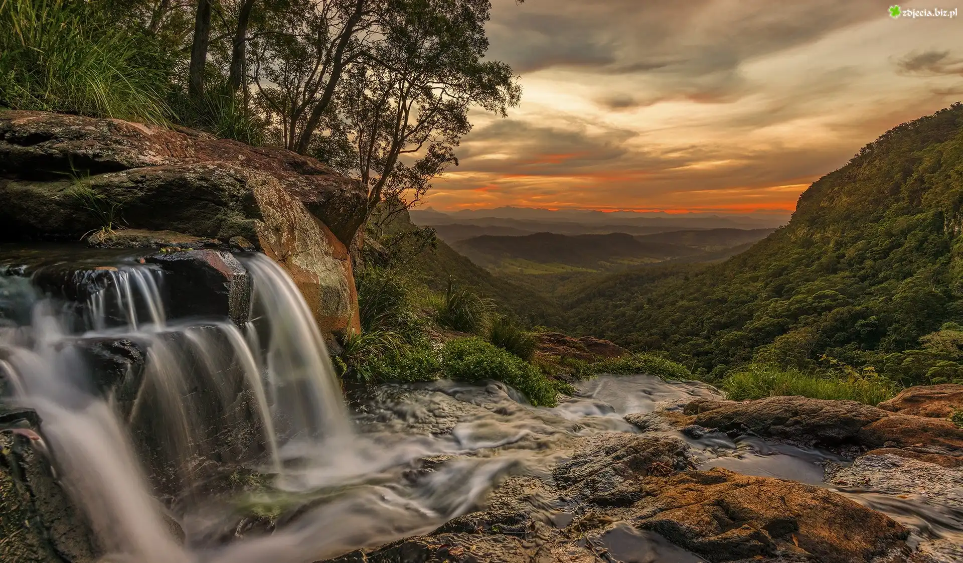 Zdjęcie Australia, Wodospad Moran Falls, Skały, Drzewa, Wzgórza