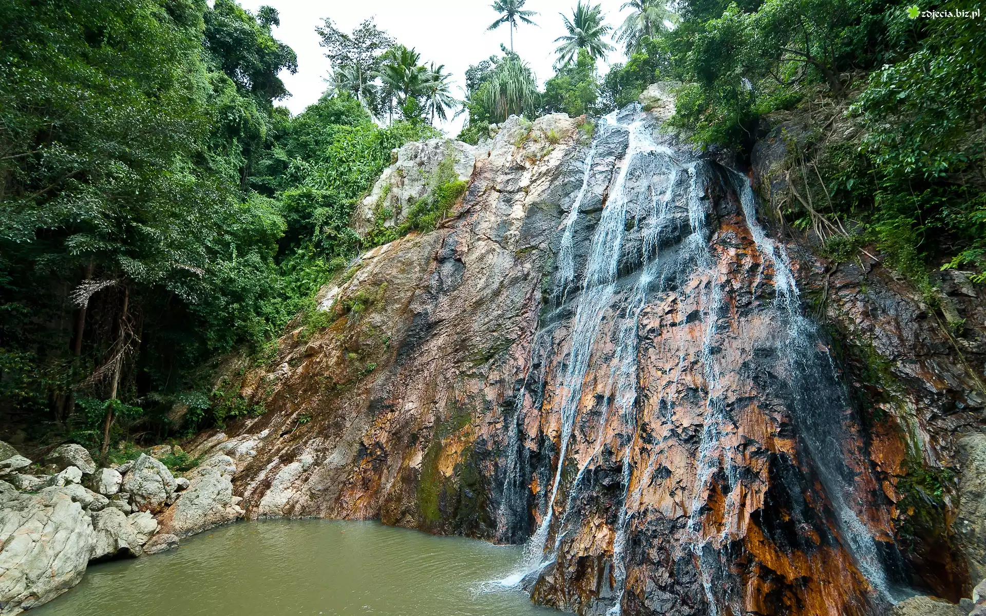 Zdjęcie Drzewa, Wodospad, Skały