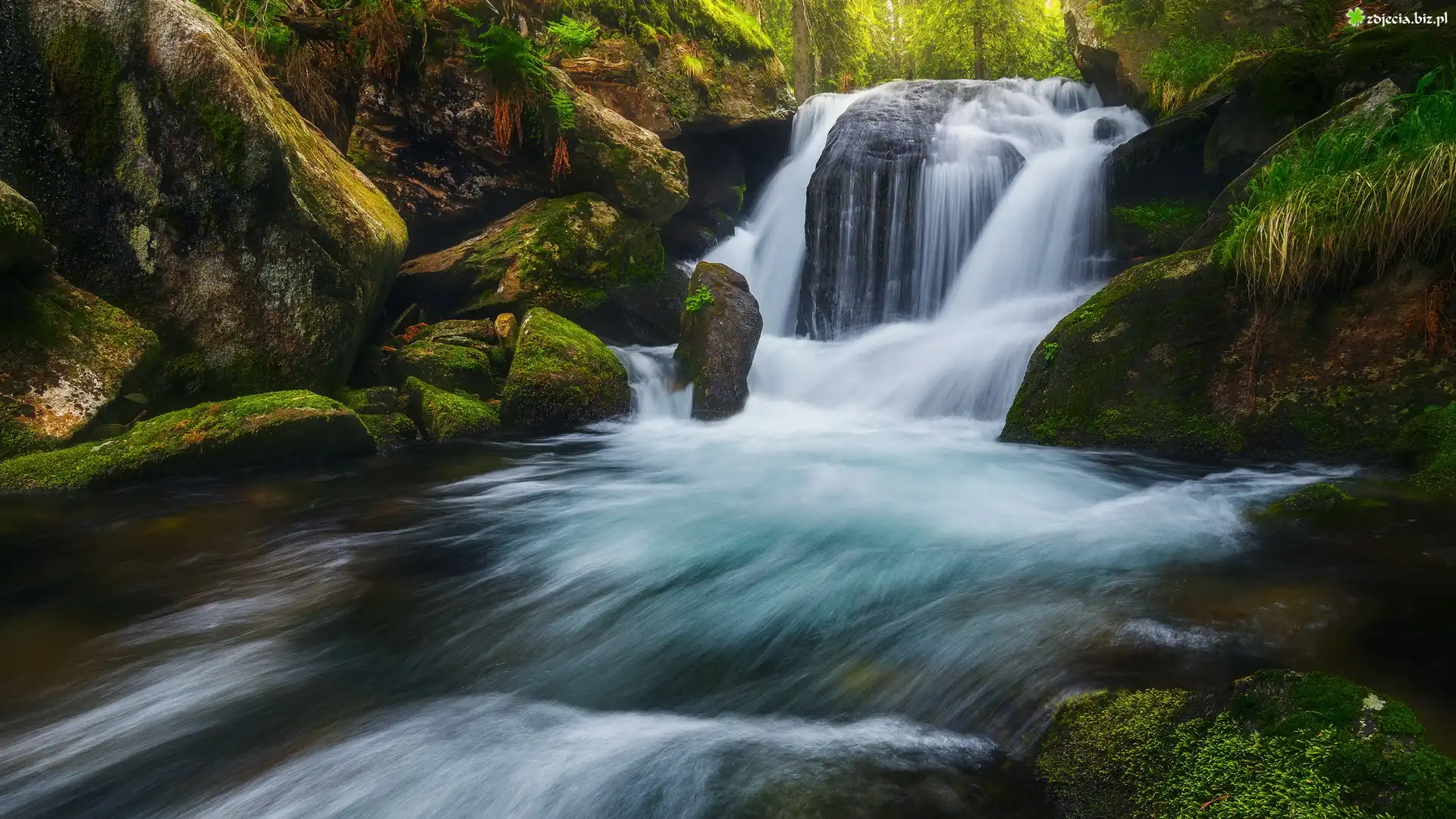 Zdjęcie Wodospad, Kamienie, Omszone, Głazy, Rzeka