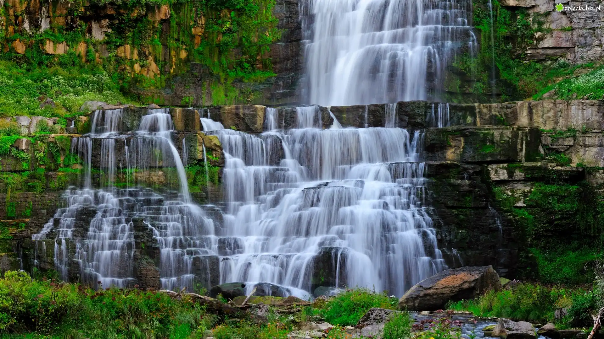 Zdjęcie Wodospad, Chittenango Falls, Kaskada, Skały, Kamienie, Roślinność, Park miejski, Nowy Jork, Stany Zjednoczone |