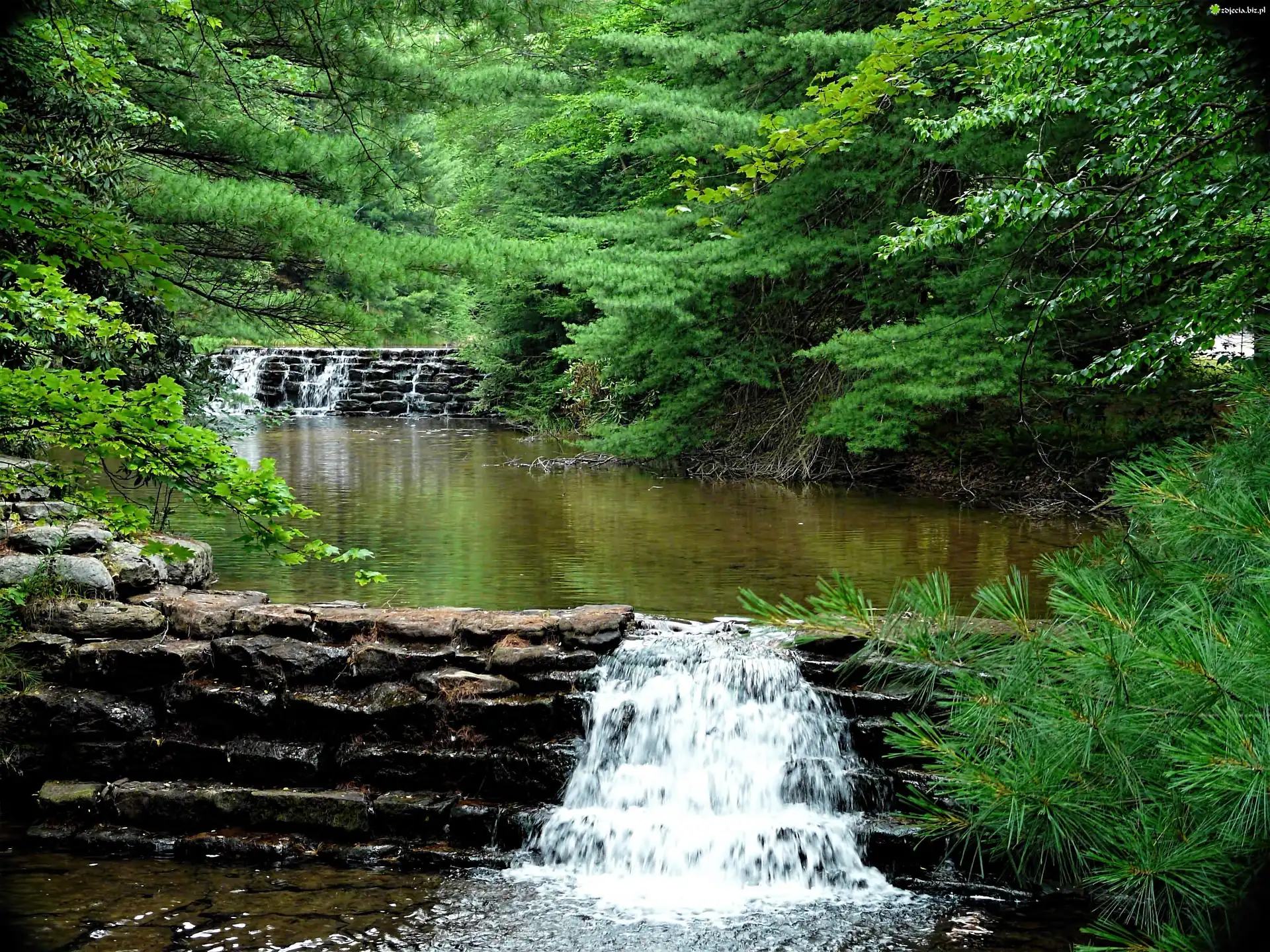 Zdjęcie Wodospad, Jeziorko, Ogród, Drzewa