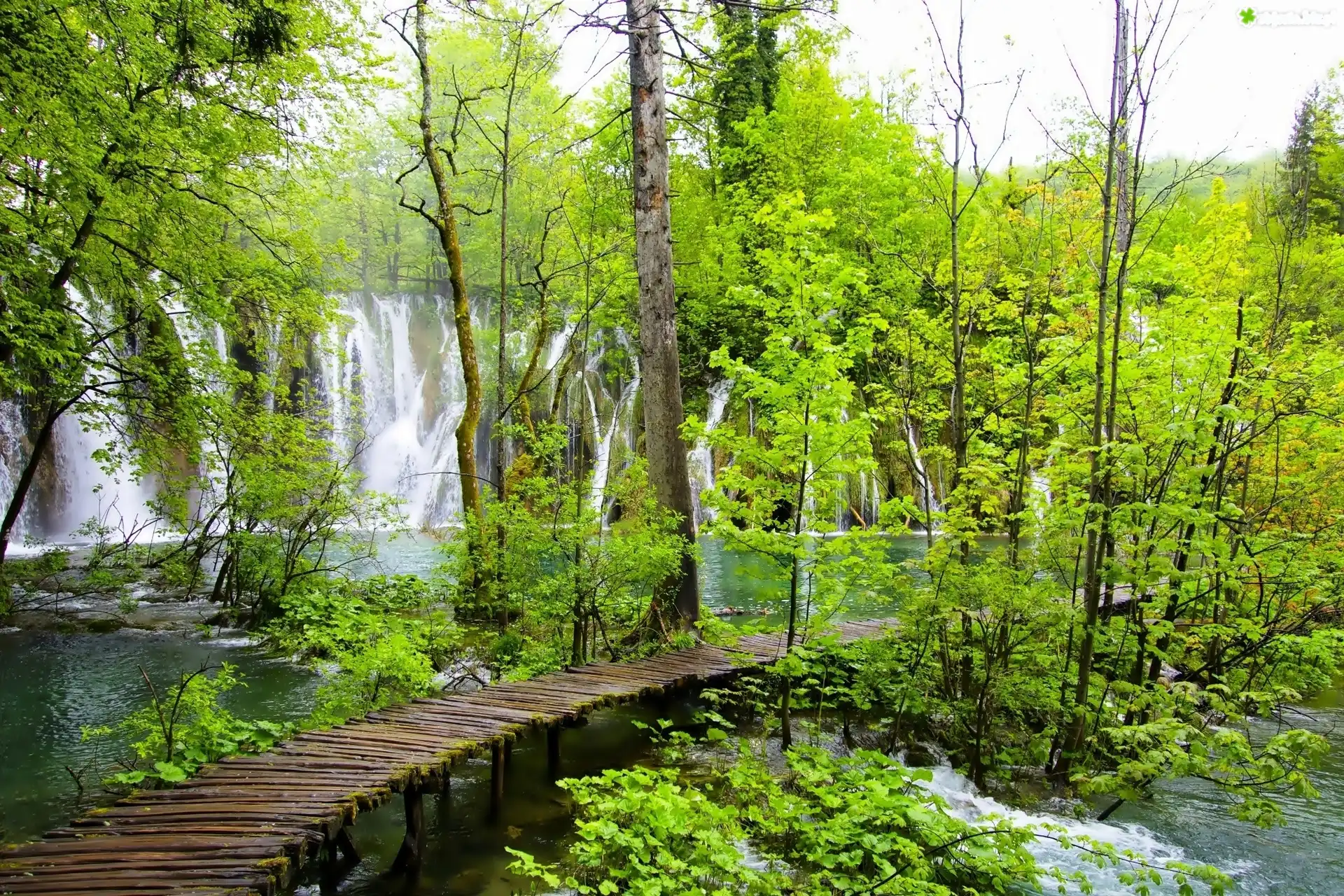 Zdjęcie Wodospad, Las, Pomost, Plitvice, Chorwacja