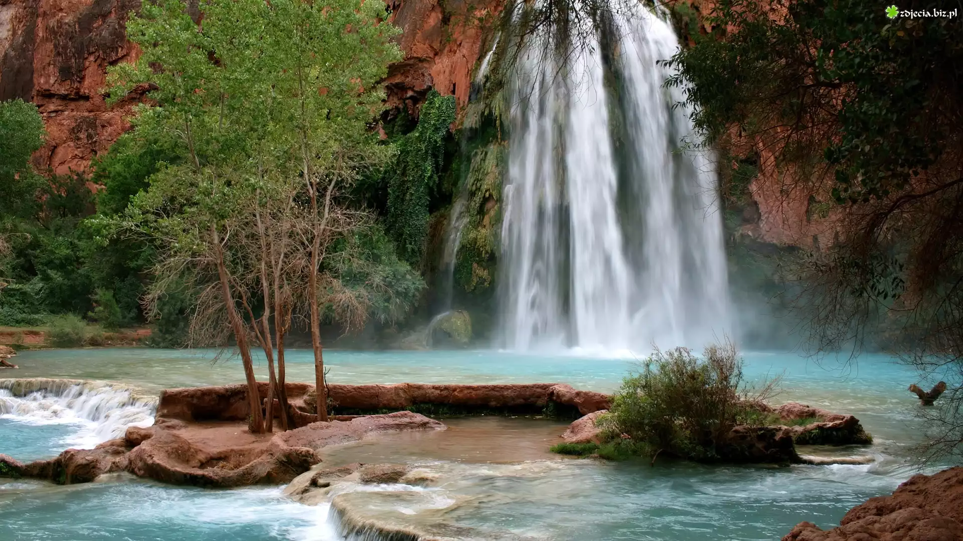 Zdjęcie Wodospad, Havasu, Drzewa, Skały, Arizona