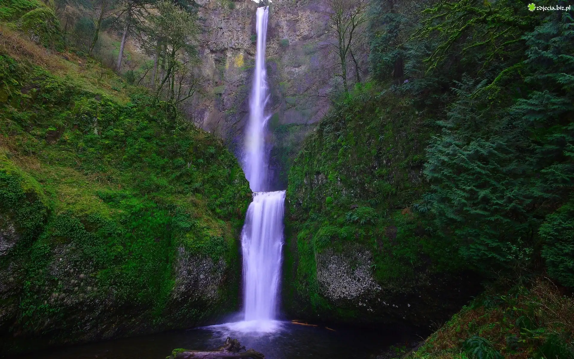 Zdjęcie Wodospad, Omszałe, Skały, Roślinność