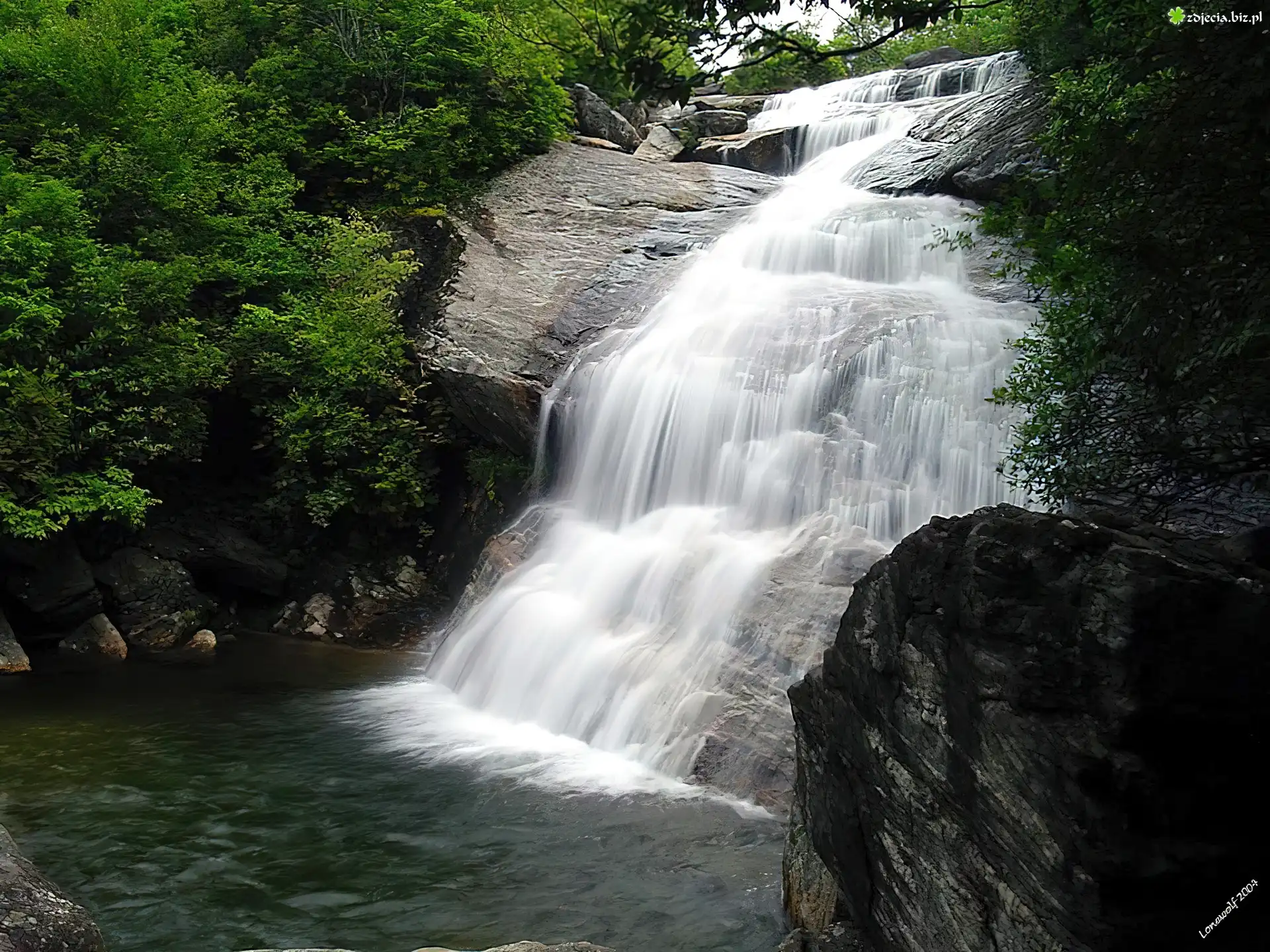 Zdjęcie Wodospad, Woda, Skały, Drzewa