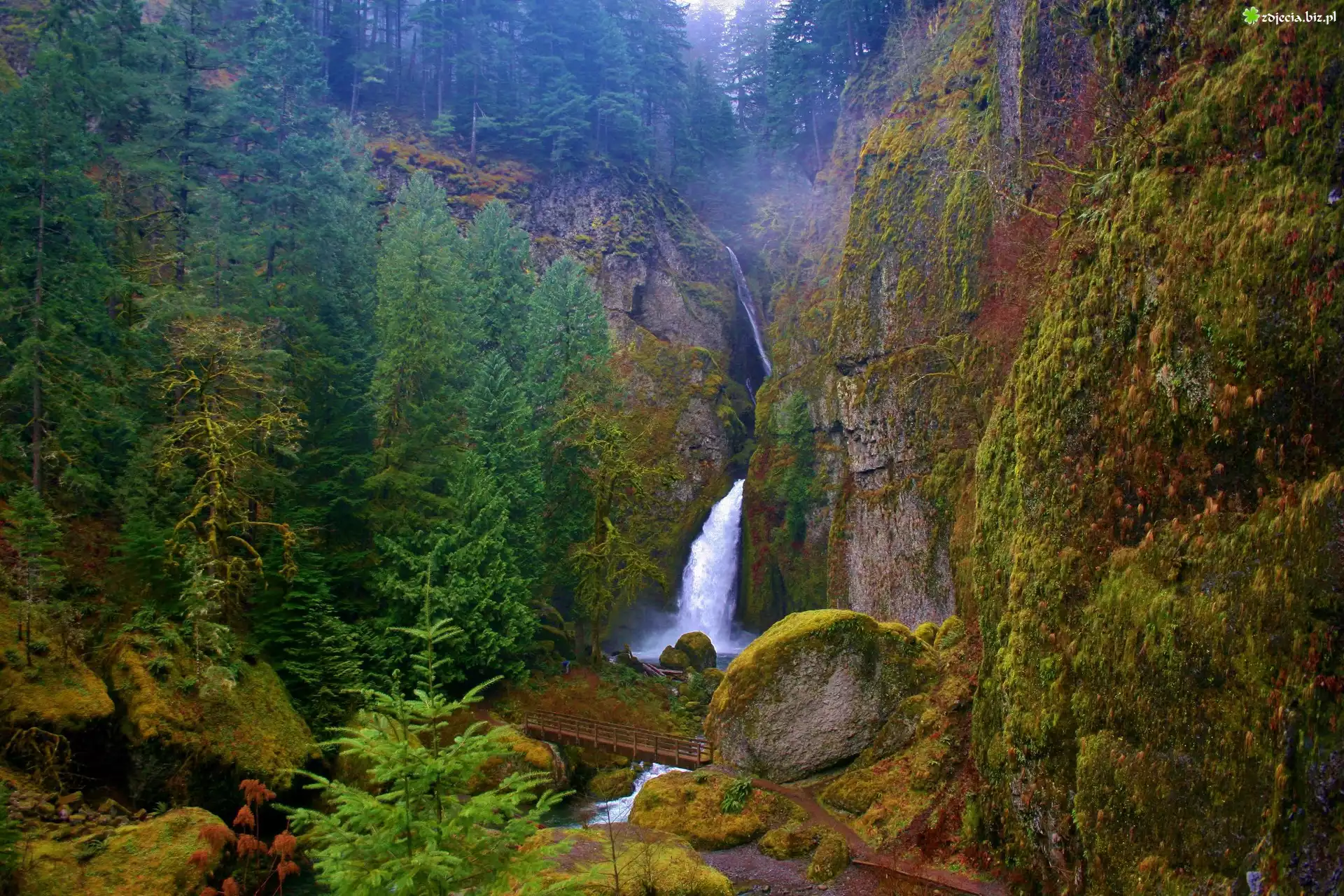 Zdjęcie, Wodospad, Skały, Las, Wahclella, Oregon