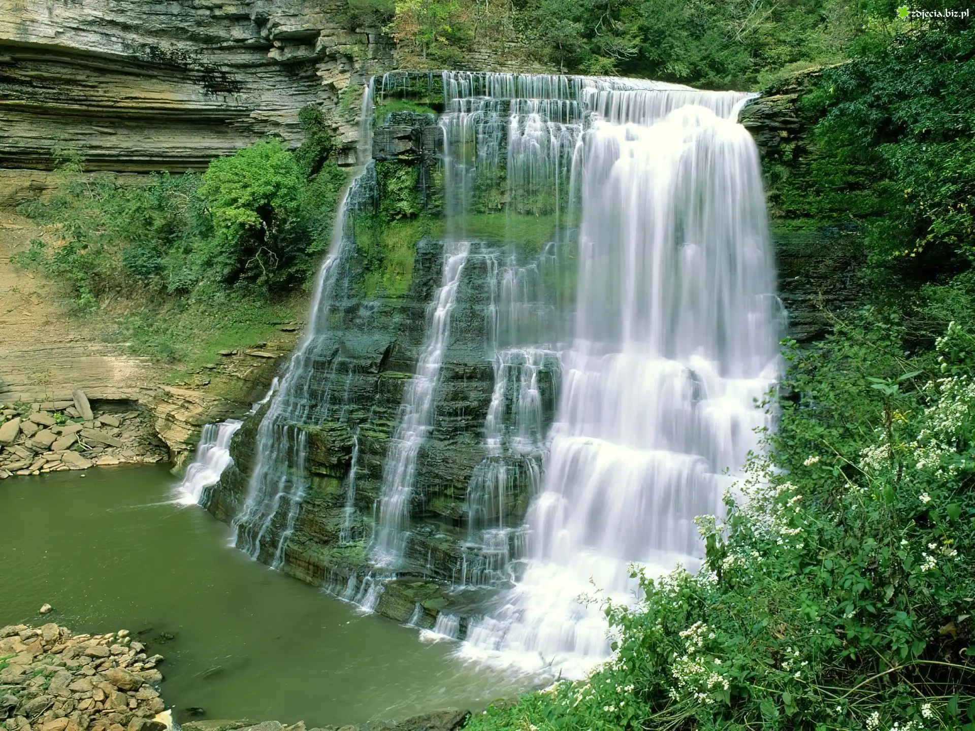 Przepiękny Wodospad, Drzewa Wodospad, Lato Wodospad Wodospad, Kaskadowy Wodospad, Mech Liście, Woda, Kaskada Leśny, Wodospad Wodospad, Drewniany, Mostek Wodospad, Zbocze, Góry Wodospad, Skały Wodospad Drzewa Wodospad Lasy, Rzeka, Wodospad, Skała Skała, Wodospad, Zieleń