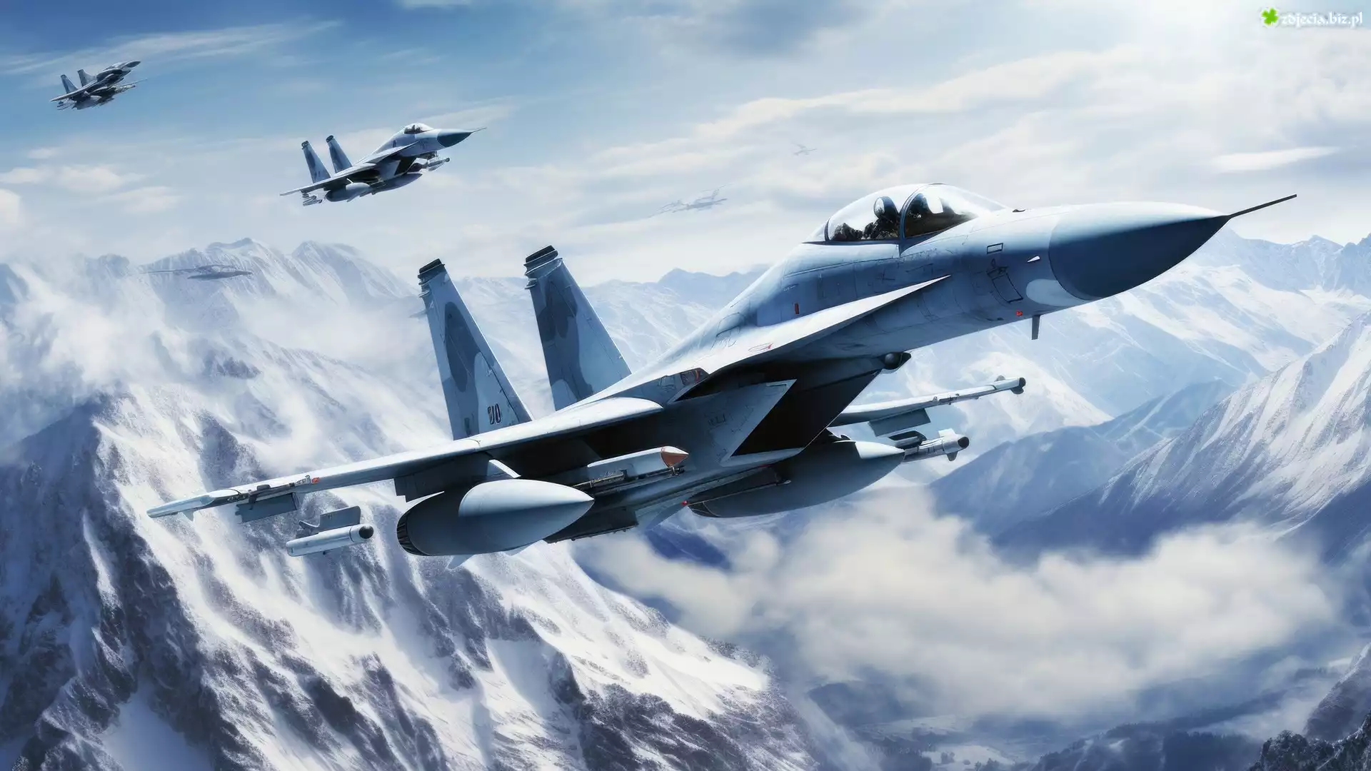 Zdjęcie Samoloty, Wojskowe, Zaśnieżone, Góry, AI