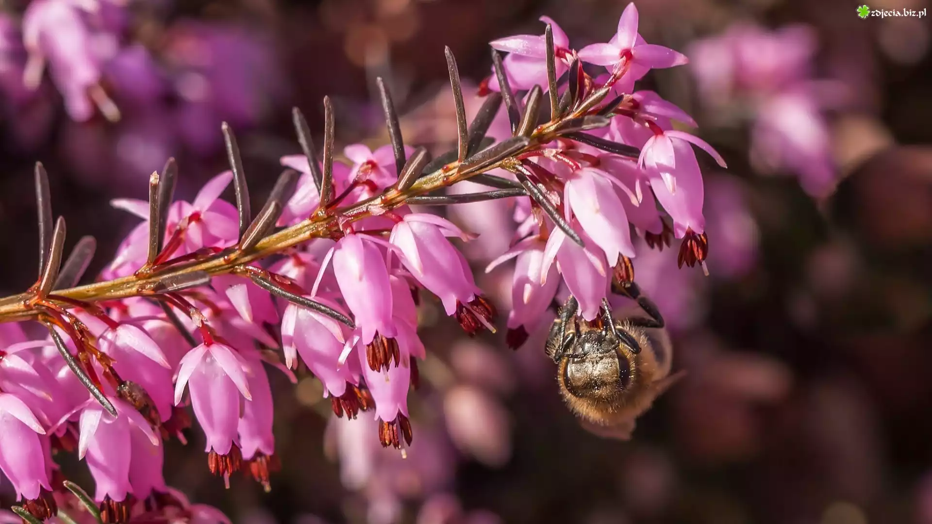 Zdjęcie, Wrzosiec krwisty, Pszczoła, Makro