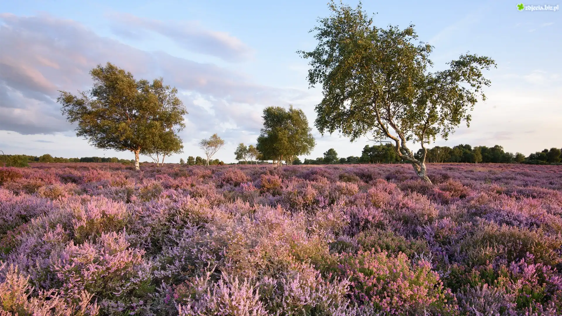 Zdjęcie Wrzosowisko, Wrzosy, Drzewa, Brzozy