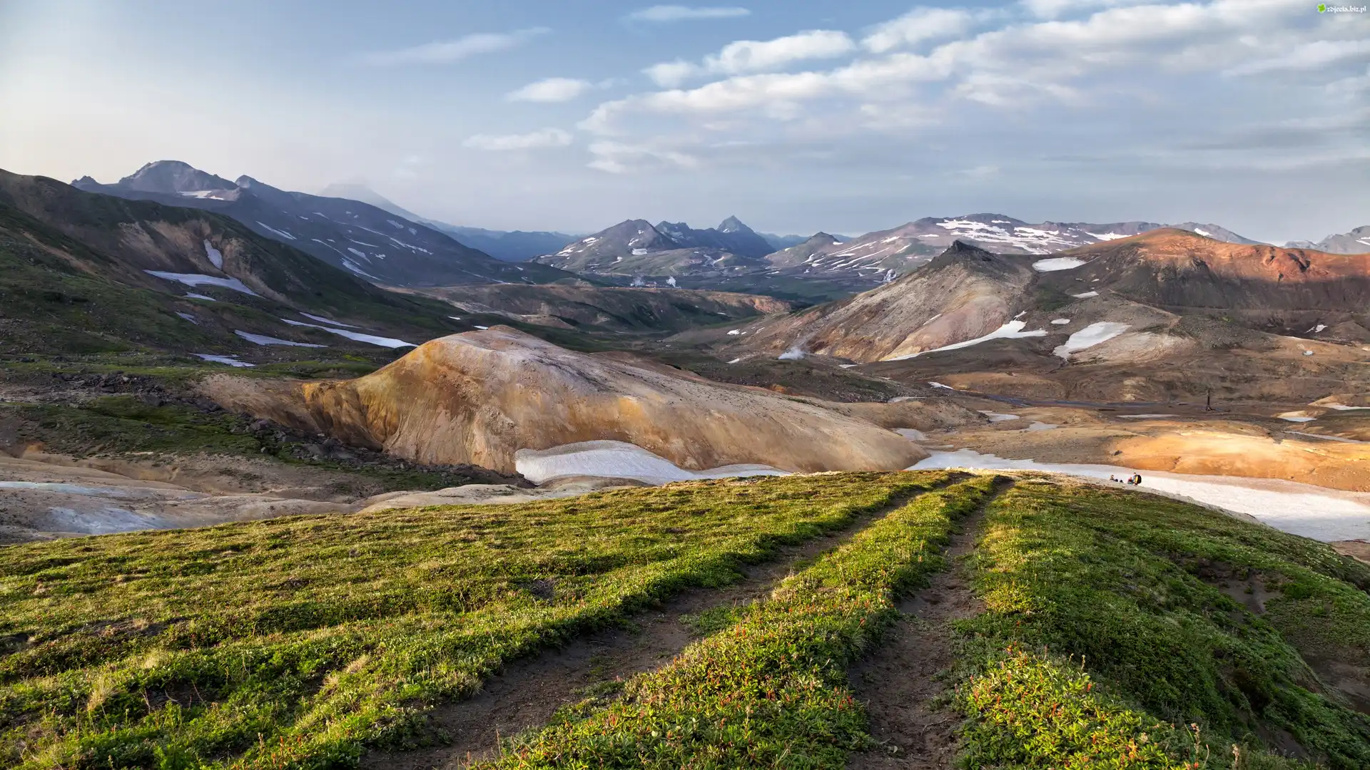 Zdjęcie Wschód, Słońca, Góry, Łąki, Chmury