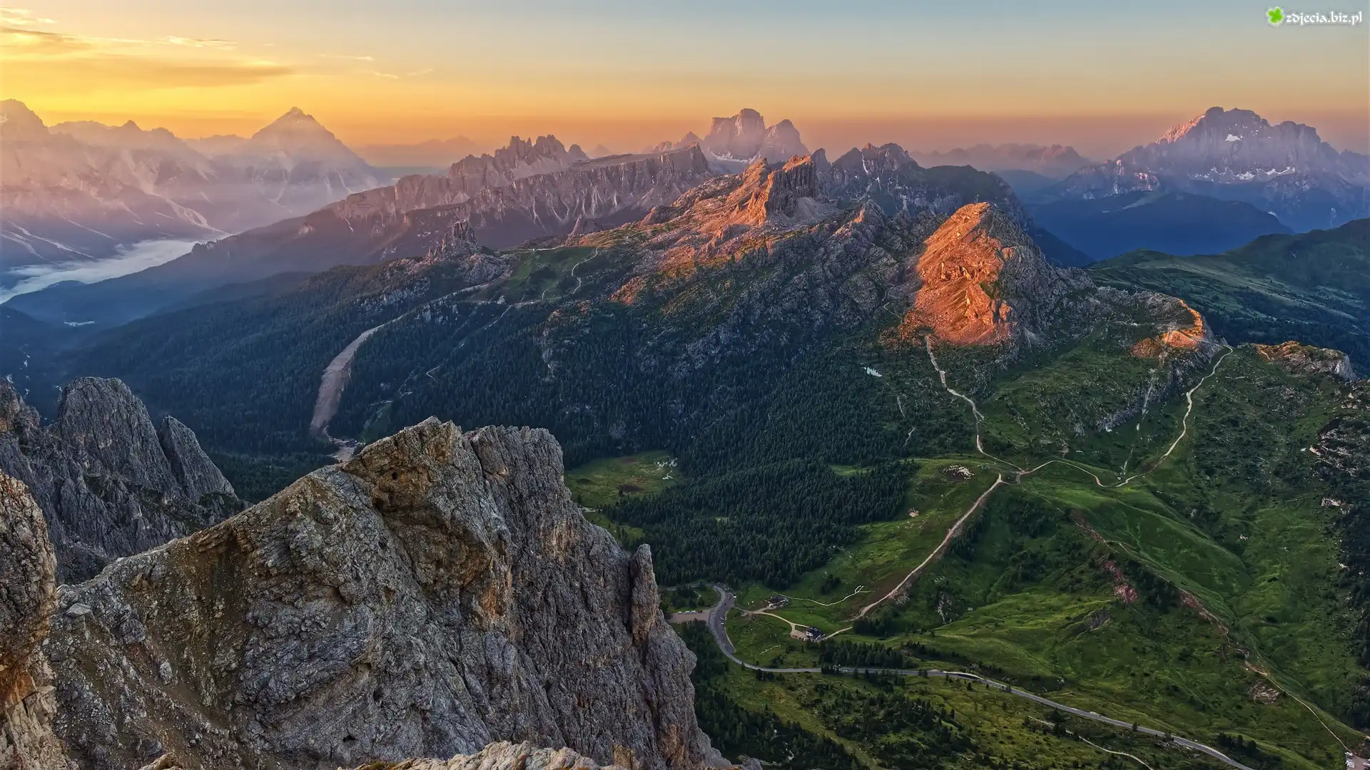 Zdjęcie, Góry, Wschód słońca, Mgła, Szlaki turystyczne, Skały