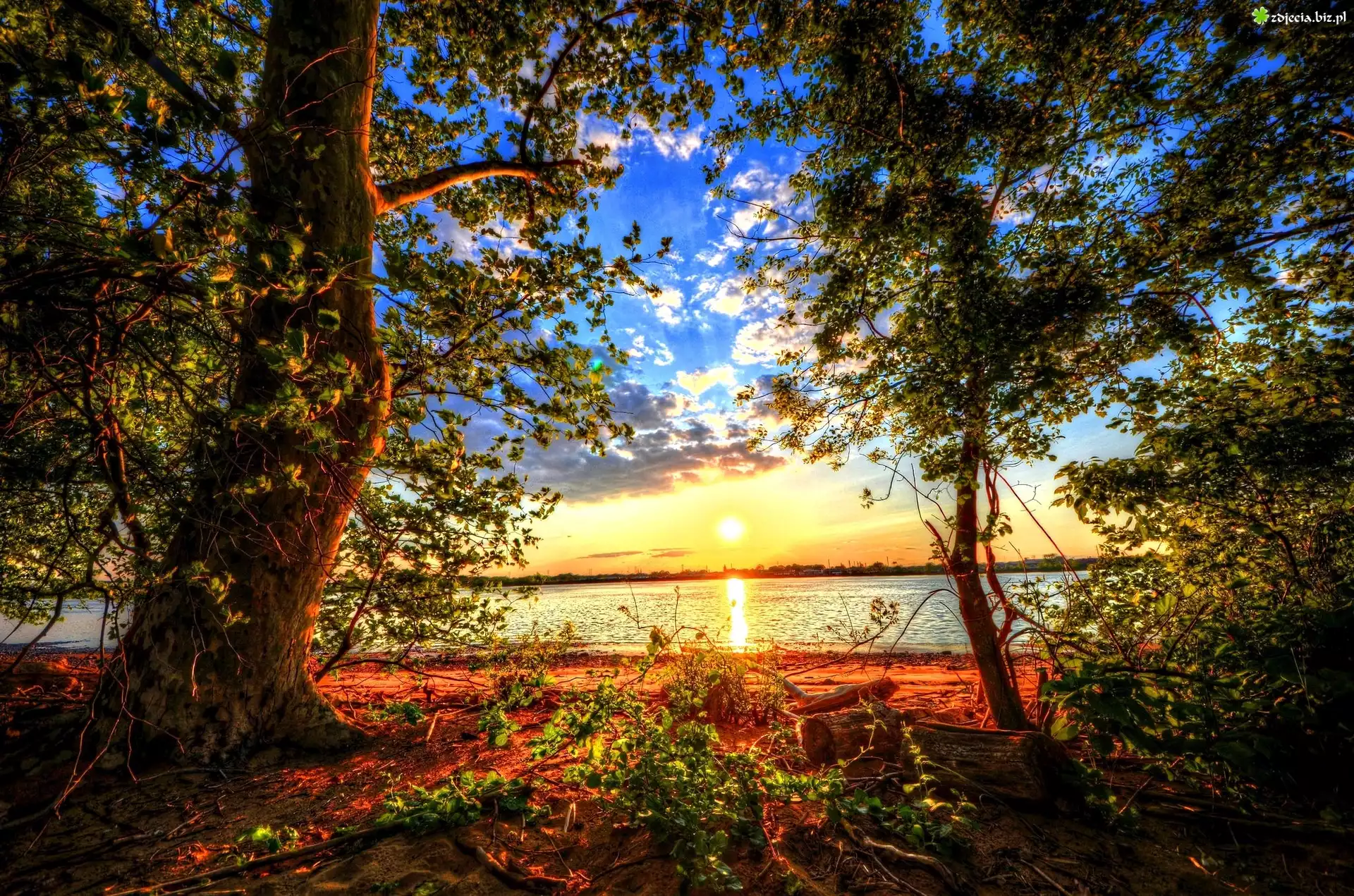 Zdjęcie Wschód słońca, Jezioro, Drzewa