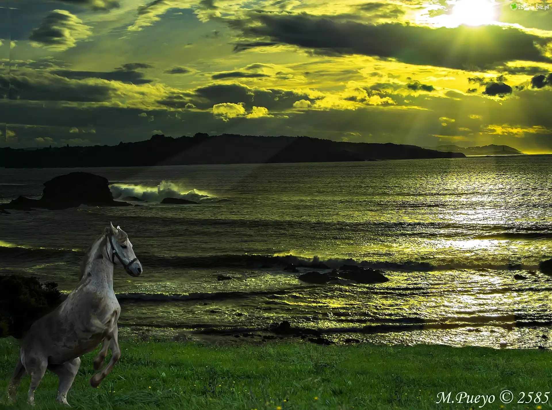 Zdjęcie Wschód Słońca, Morze, Koń, Łąka