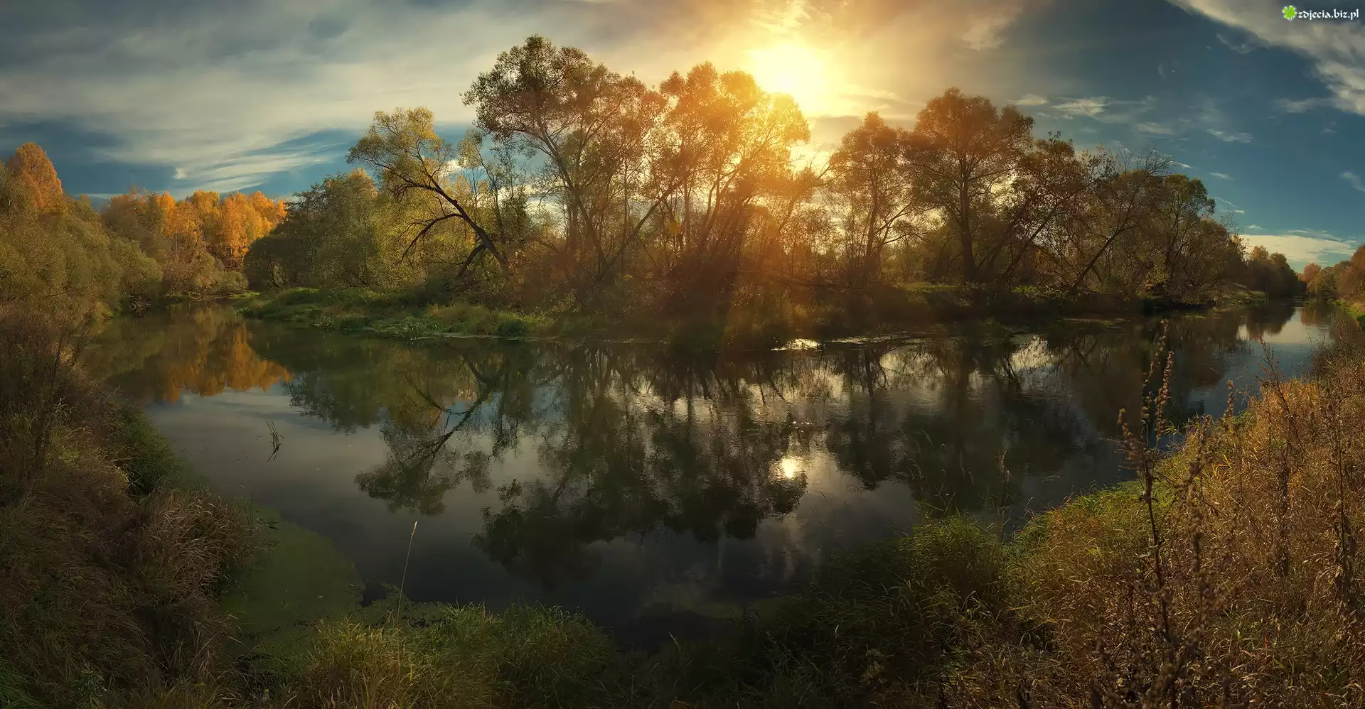 Zdjęcie Drzewa, Wschód słońca, Rzeka Istra, Obwód moskiewski, Rosja