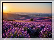 Zdjęcie, Lawenda, Pole, Wzgórza, Wschód słońca, Drzewa, AI