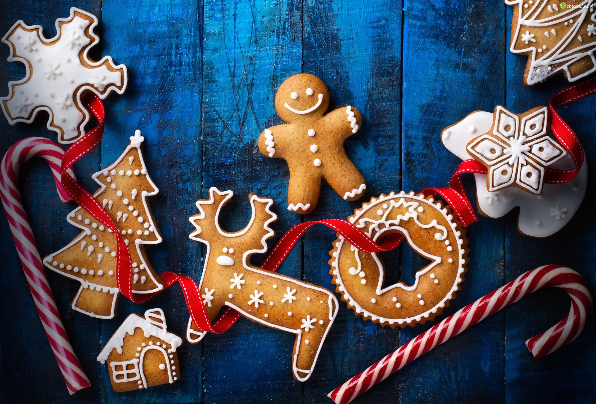 Zdjęcie Ciasteczka, Wstążka, Lizaki, Kompozycja, Świąteczna, Boże Narodzenie