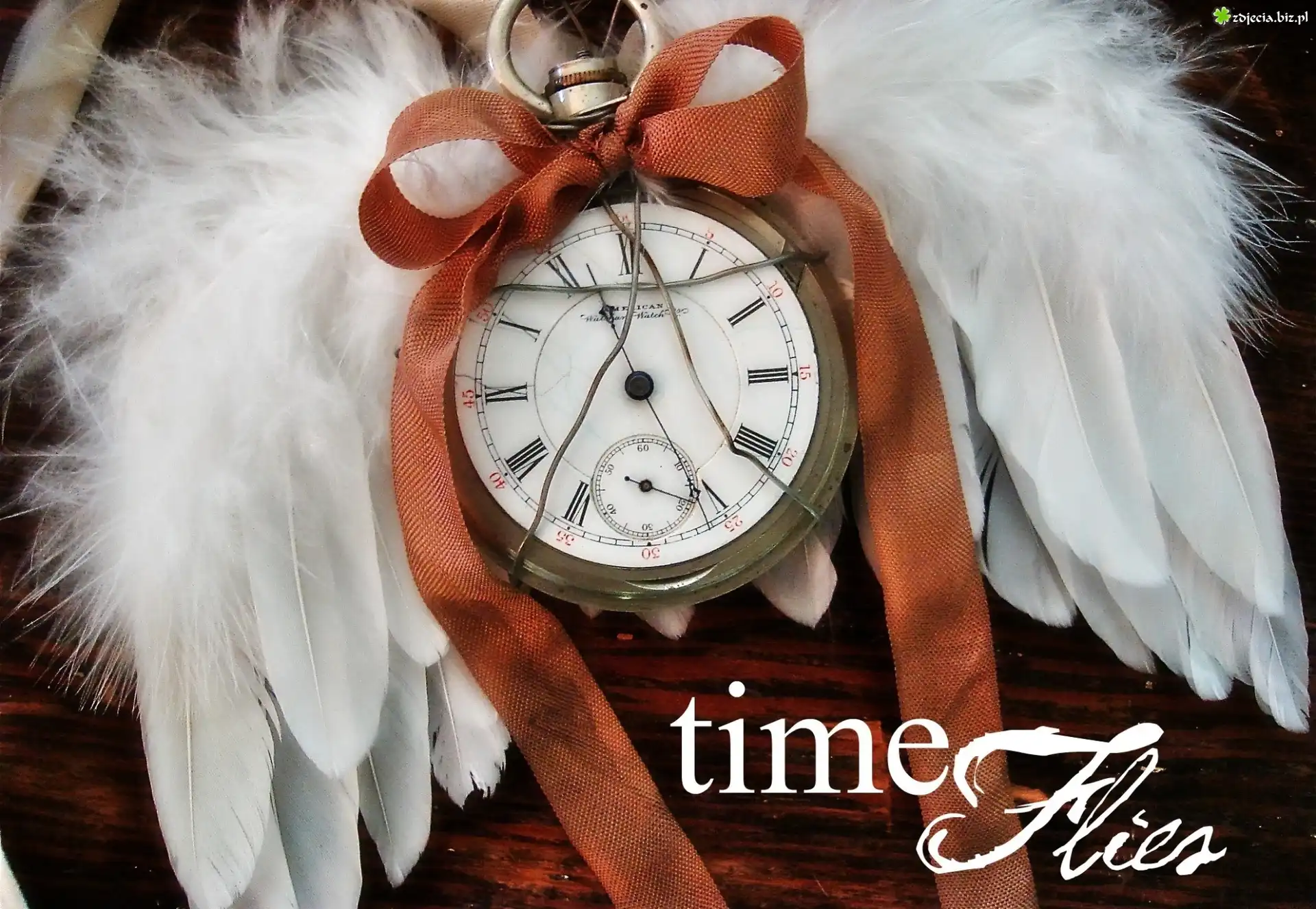 Zdjęcie, Zegar, Wstążka, Pióra