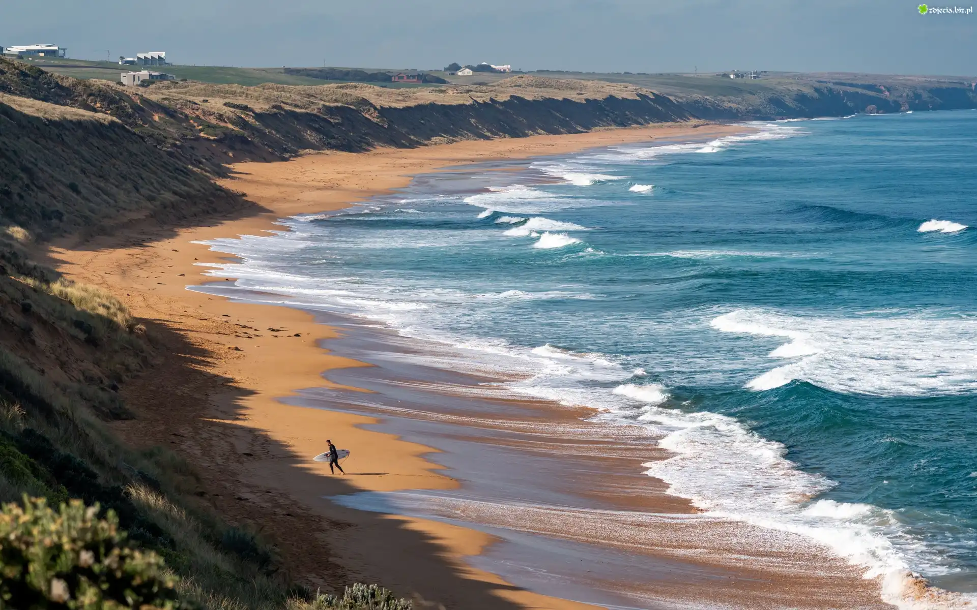 Zdjęcie Wybrzeże, Plaża, Morze, Fale, Surfer