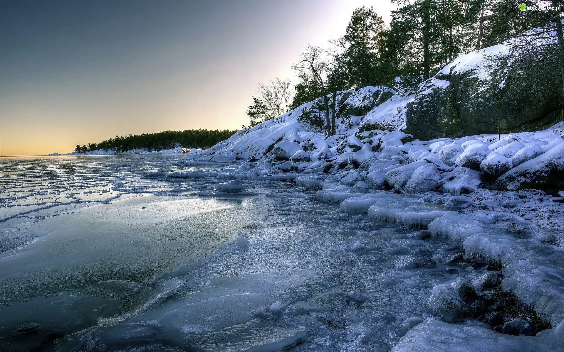 Zdjęcie Wybrzeże, Skały, Lasy, Zima