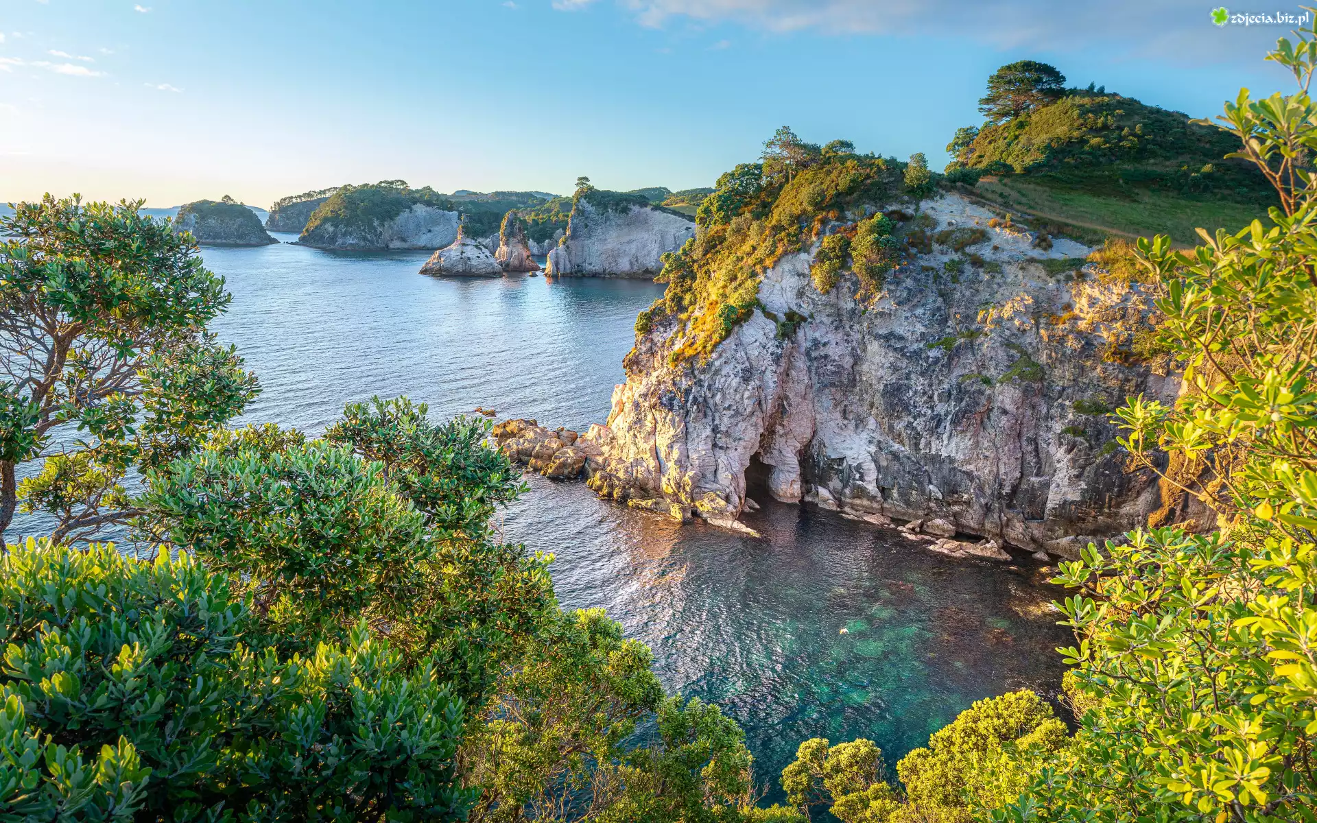 Zdjęcie Morze, Wybrzeże, Skały, Zielone, Drzewa