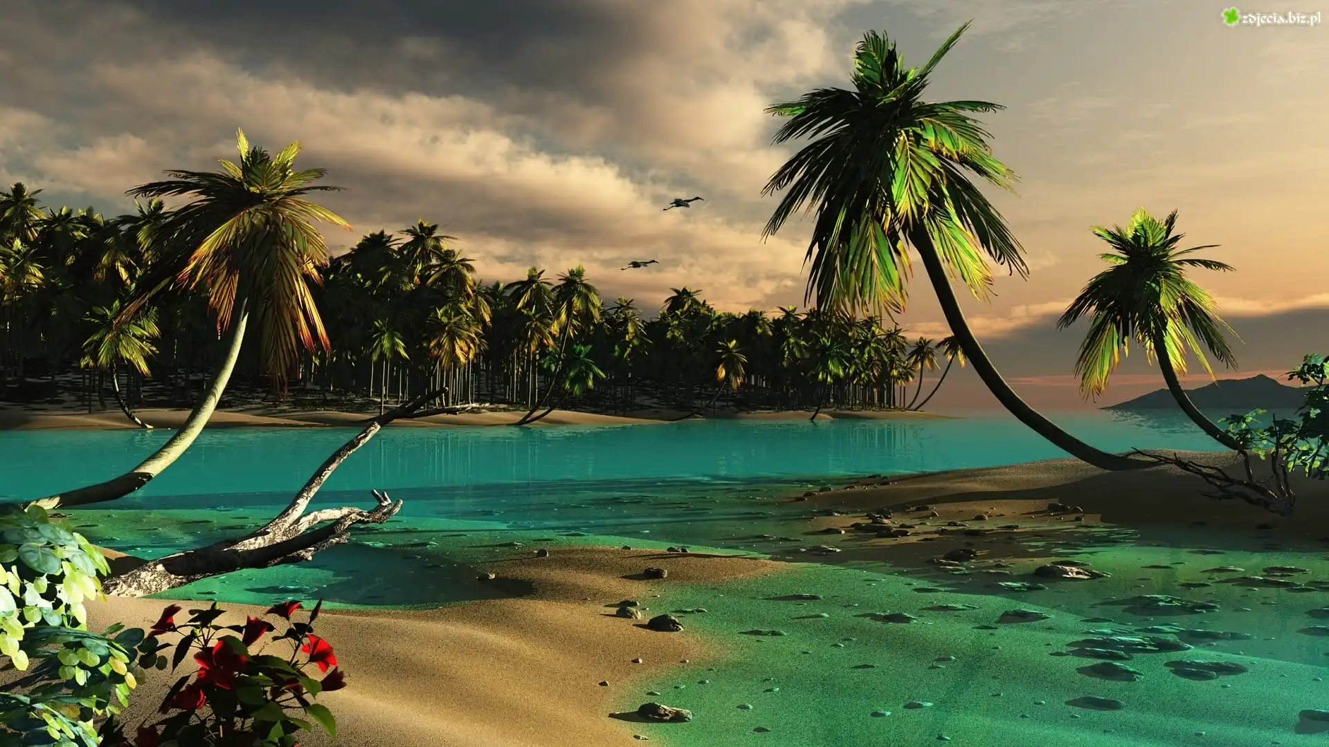 Morze, Plaża, Wyspa Pustynia, Krzaczaste, Palmy Domy, Morze, Wyspa, Rodos, Grecja Latarnia morska, Palmy Plaża, Zachód Słońca, Morze, Fale Plaża, Duże, Głazy Morze, Palmy, Wiatr, Chmury Plaża, Palmy, Morze, Zachód Słońca Hotelowy, Taras, Wyspy, Tajlandia Góry, Fale, Morze, Plaża Palmy Czyste, Morze Plaża, Kamienie, Palmy Polinezja Francuska, Bora-Bora, Palma, Woda