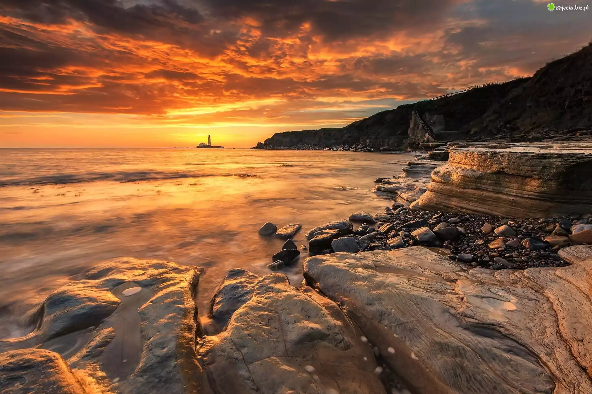 Zdjęcie Wybrzeże, Skały, Latarnia, Morska, Zachód, Słońca