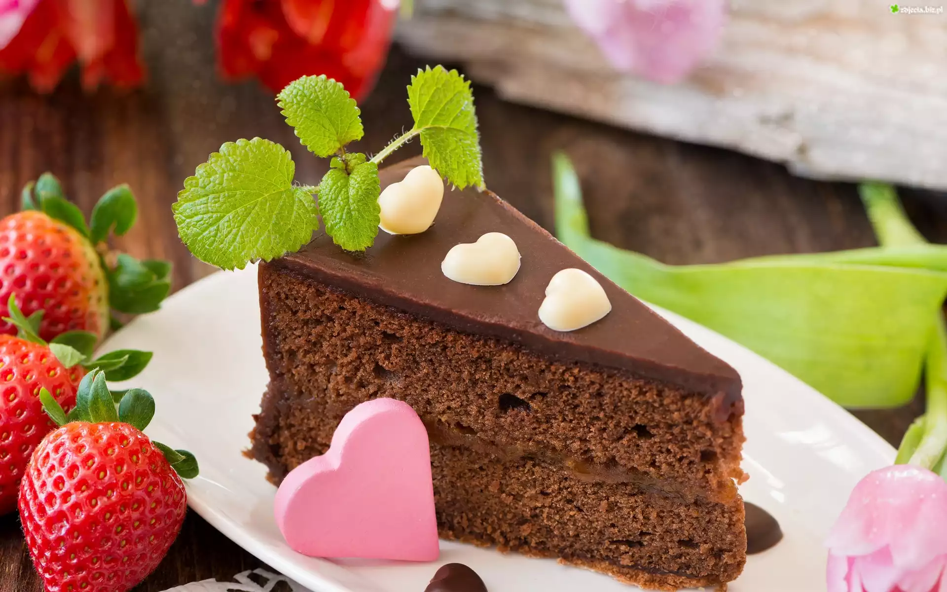 Zdjęcie Wypieki, Ciasto, Czekoladowe, Truskawki