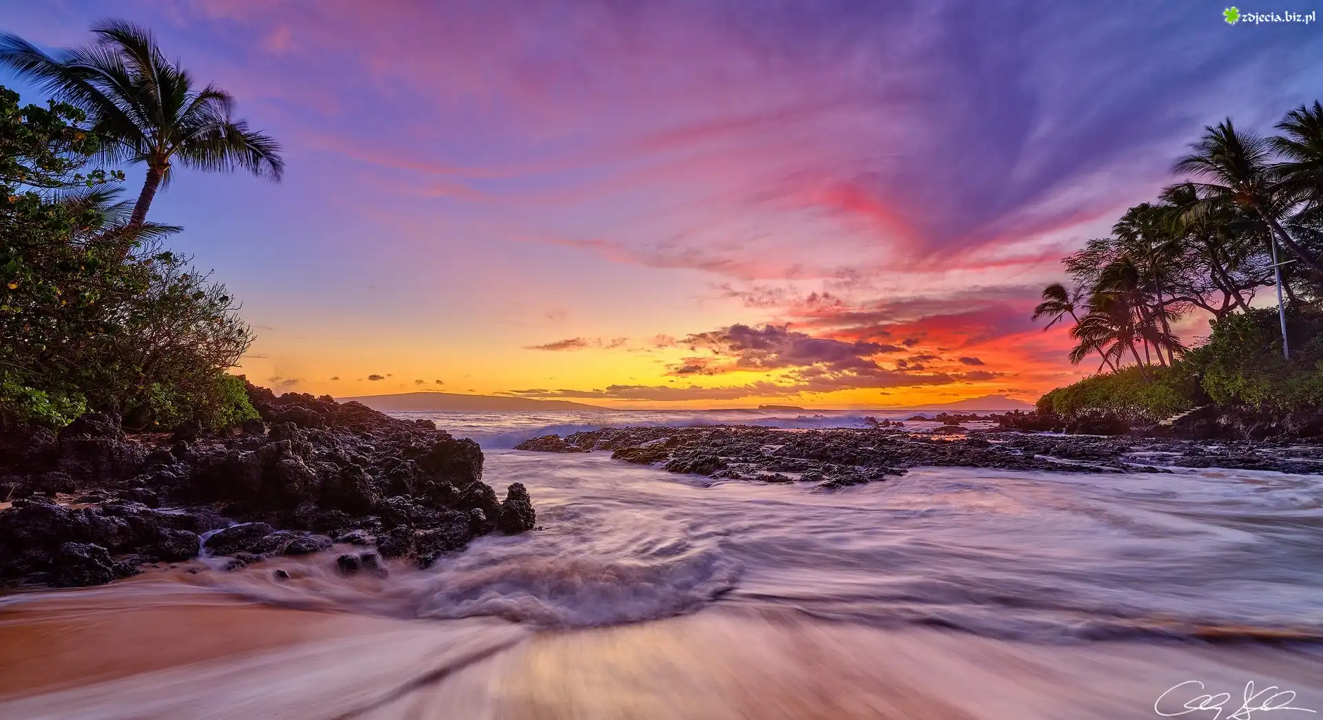 Zdjęcie Hawaje, Wyspa Maui, Morze, Zachód słońca, Palmy