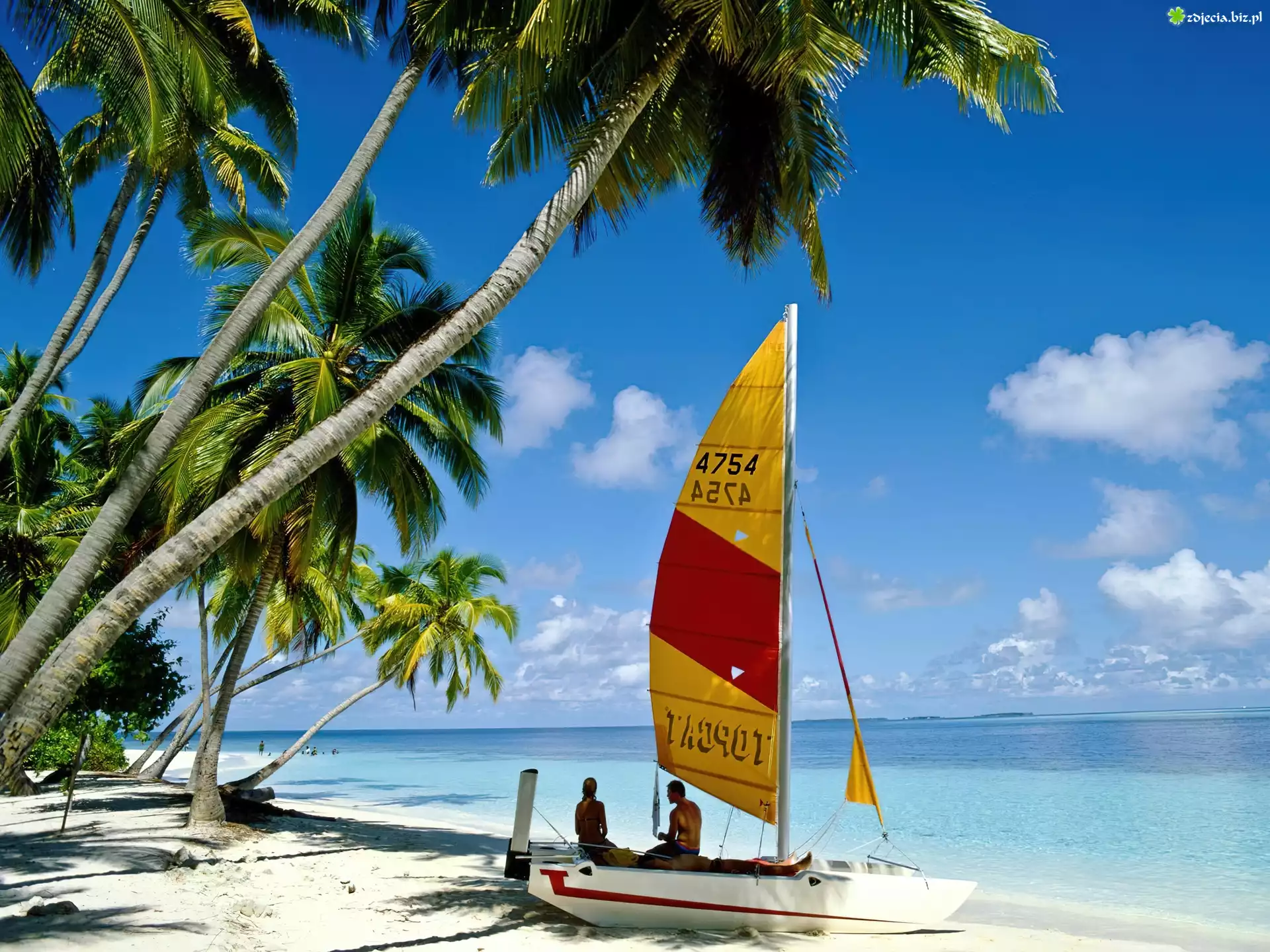 Zdjęcie Wyspa, Palmy, Plaża, Żaglówka