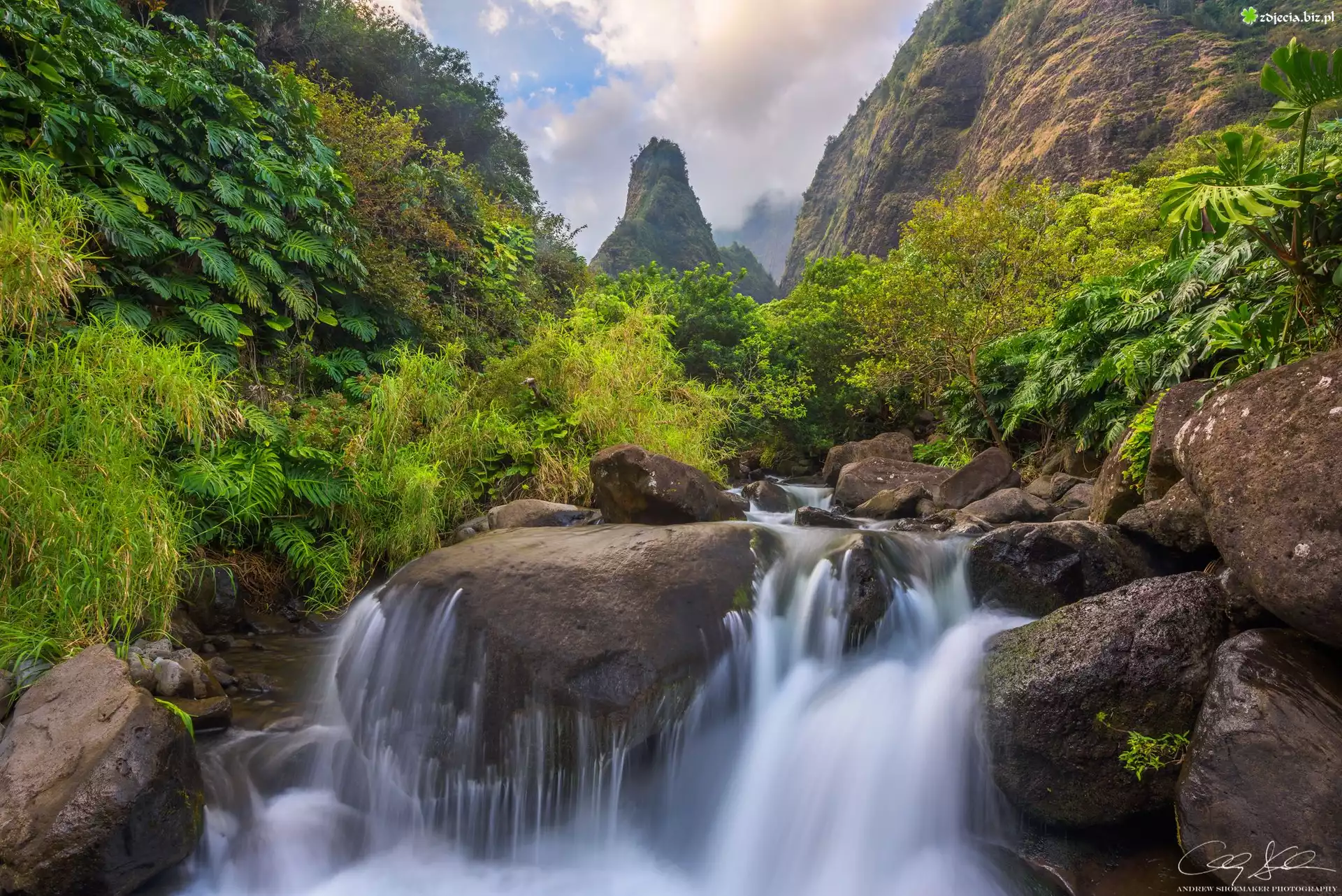 Zdjęcie Hawaje, Wyspa Maui, Potok Iao Valley, Skały, Roślinność