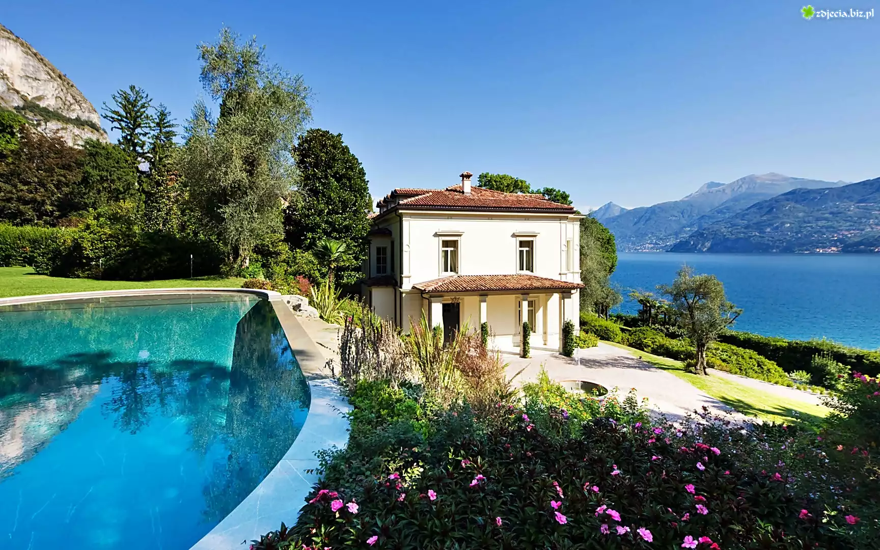Zdjęcie, Wzgórza, Jezioro, Dom, Basen, Ogród
