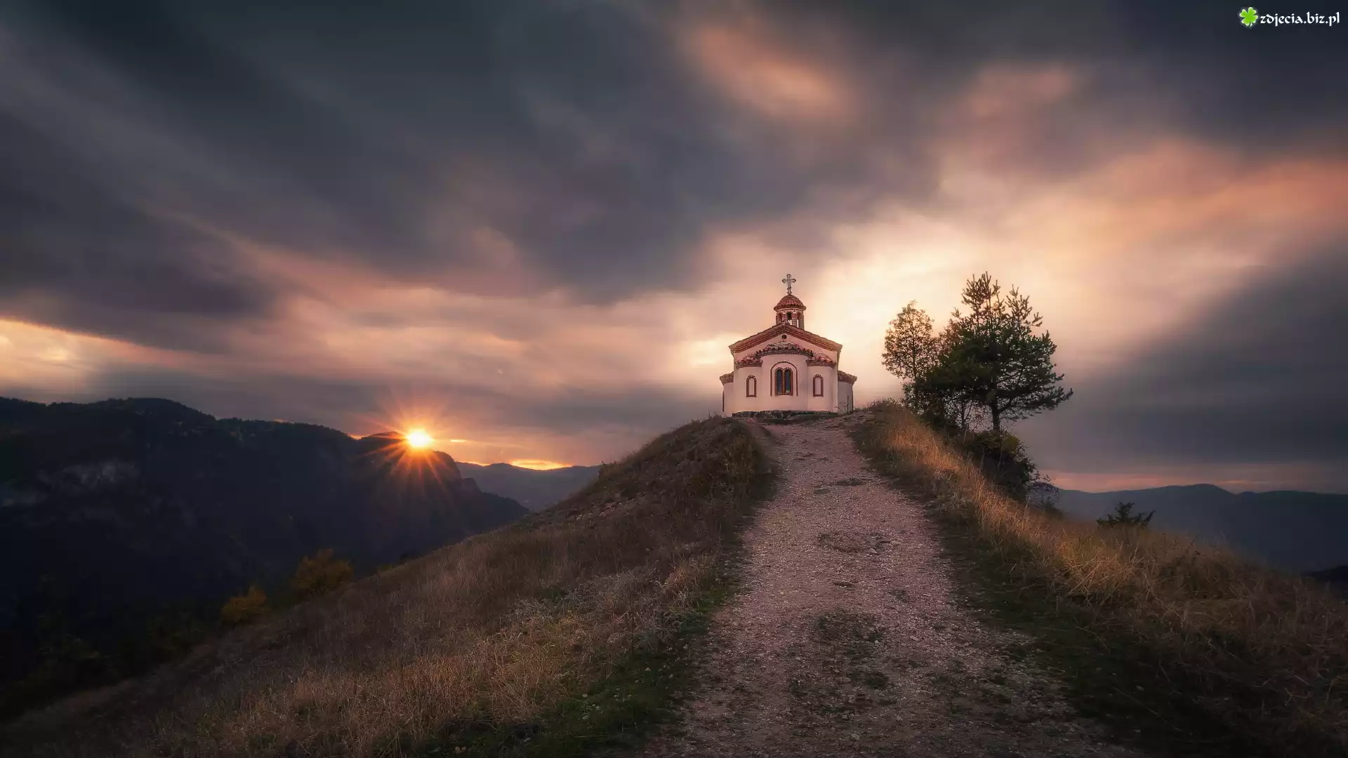 Zdjęcie Wzgórze, Kościół, Drzewa, Kaplica Wniebowstąpienia Pańskiego, Ascension of the Lord, Góry Rodopy, Bułgaria |