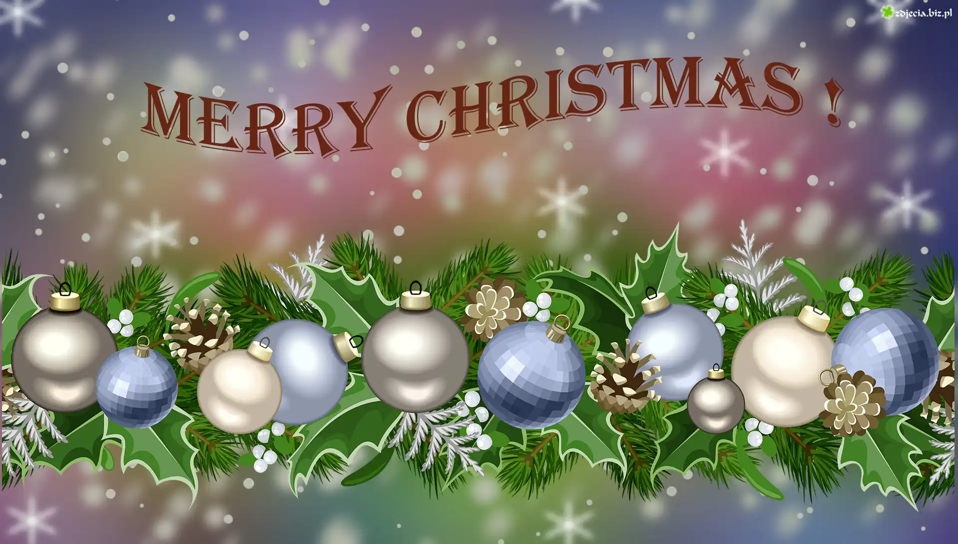 Zdjęcie Boże Narodzenie, Bombki, Grafika 2D, Napis, Merry Christmas, Życzenia
