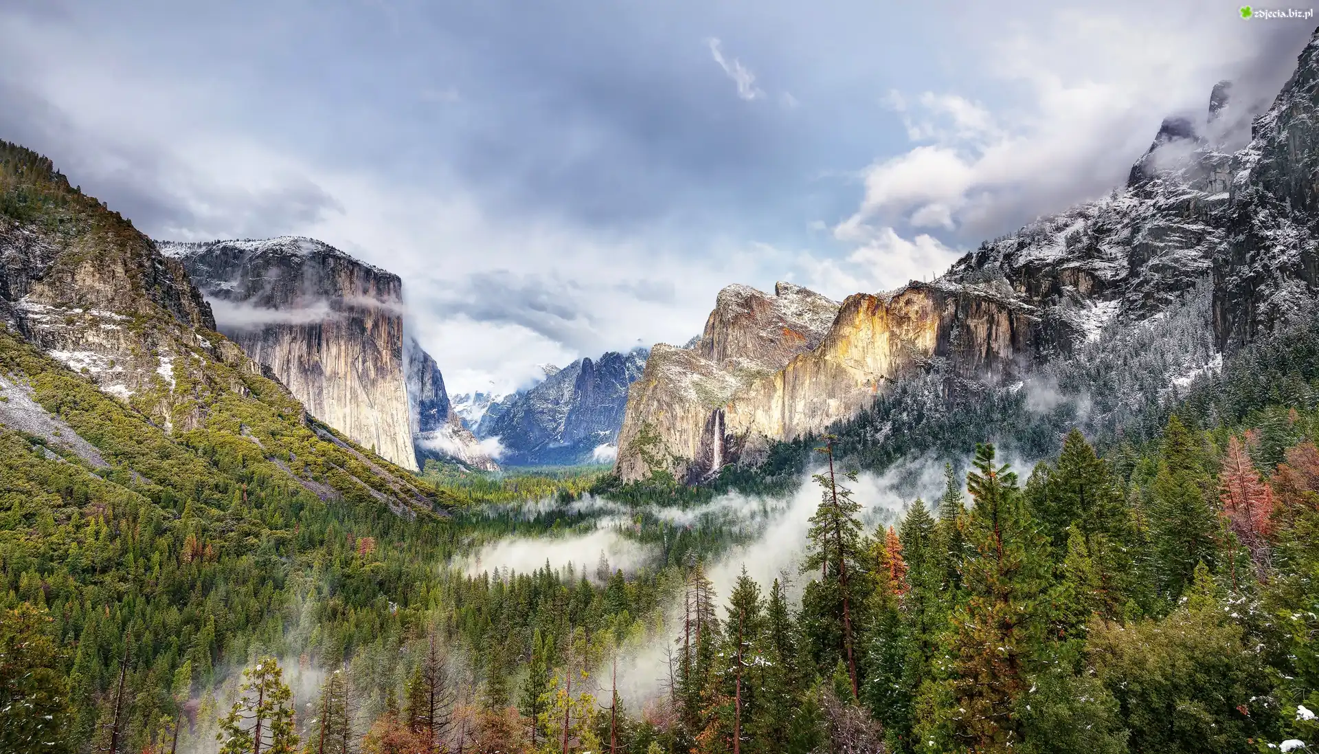 Zdjęcie Stany Zjednoczone, Stan Kalifornia, Park Narodowy Yosemite, Dolina Yosemite Valley, Góry, Las, Mgła |