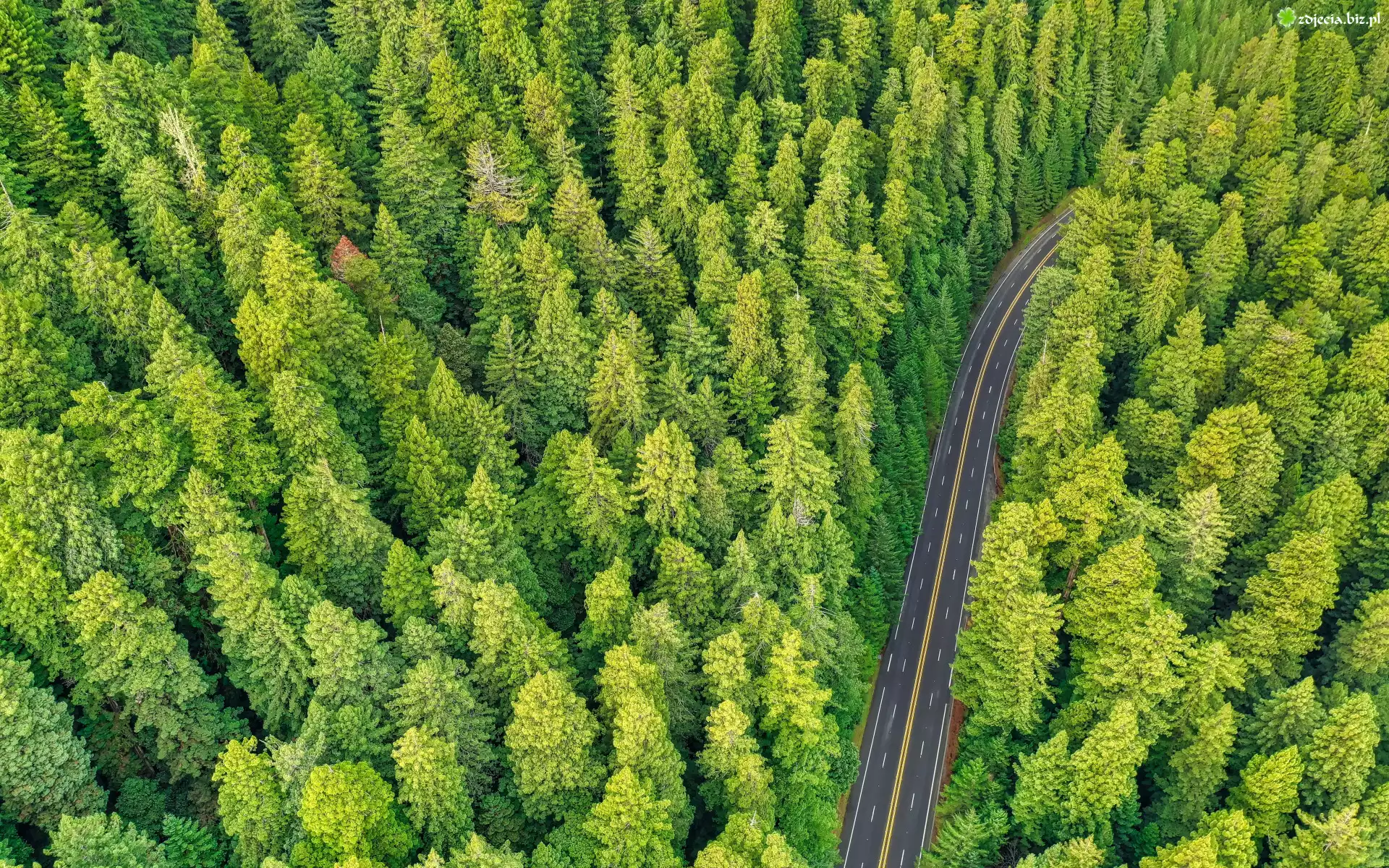 Zdjęcie Droga, Las, Drzewa, Z lotu ptaka