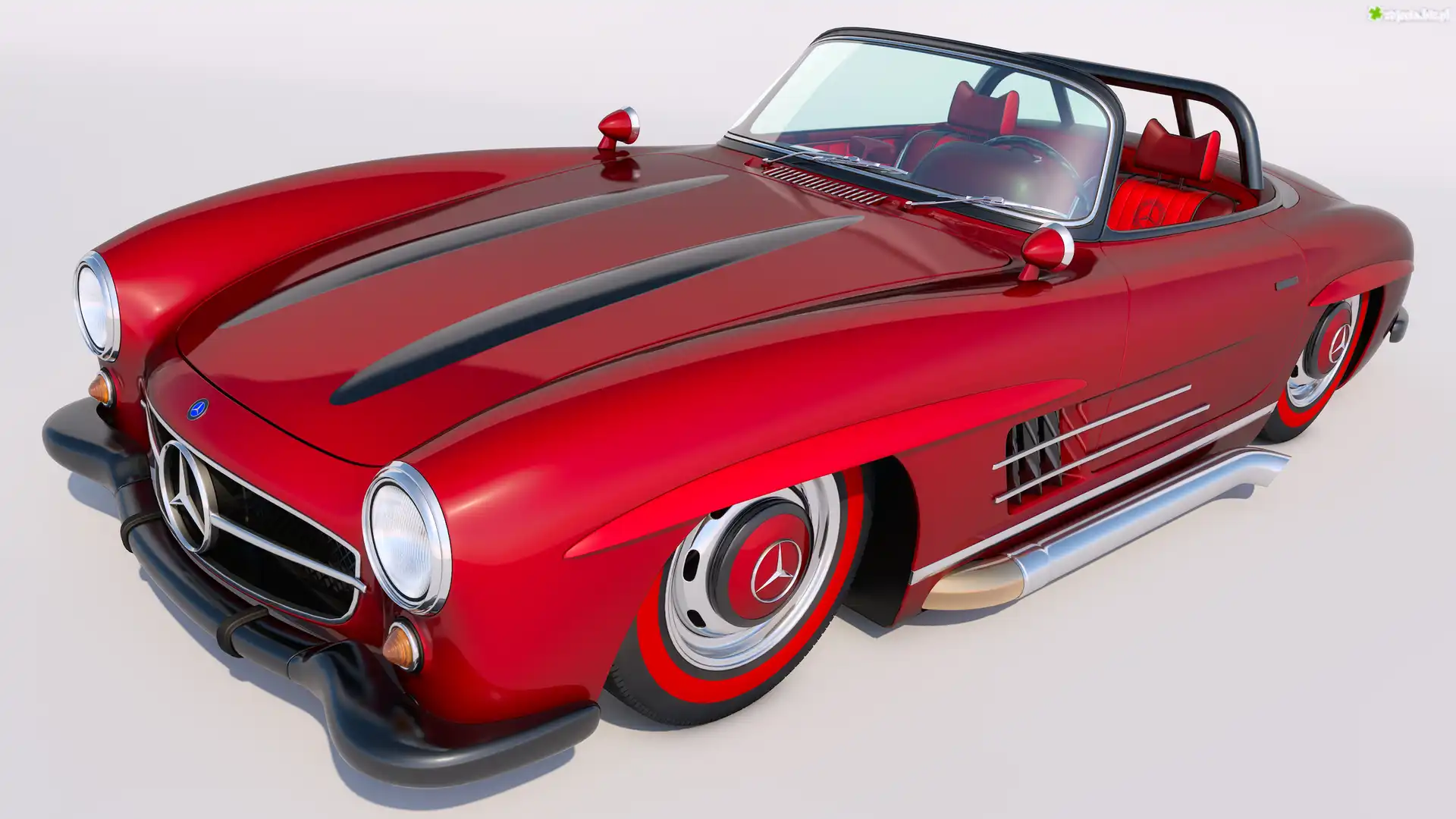 Zdjęcie, Czerwony, Zabytkowy, Mercedes Benz 300 SL Roadster, 1956