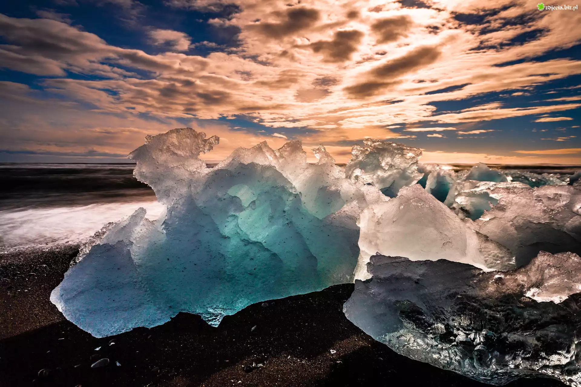 Zdjęcie, Zachód, Słońca, Bryły, Lodu