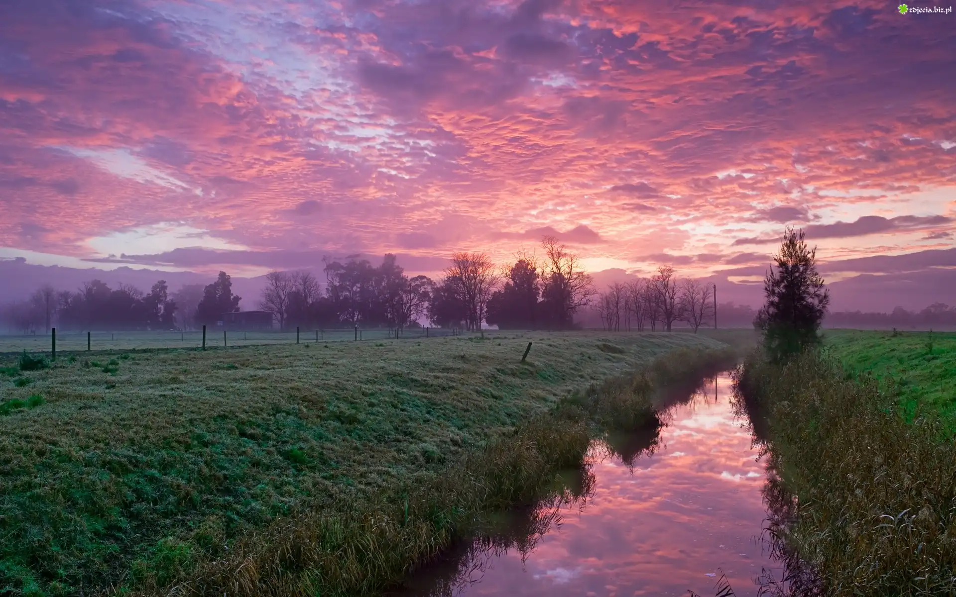 Zdjęcie Zachód, Słońca, Chmury, Łąka
