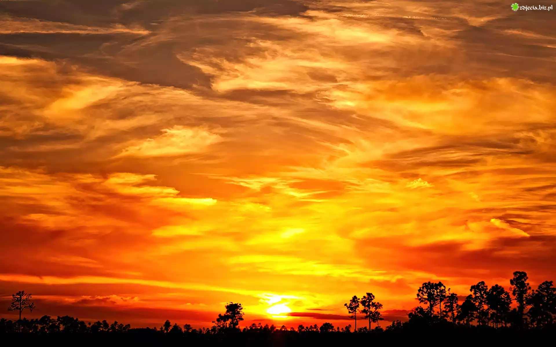 Zdjęcie Zachód, Słońca, Chmury, Drzewa