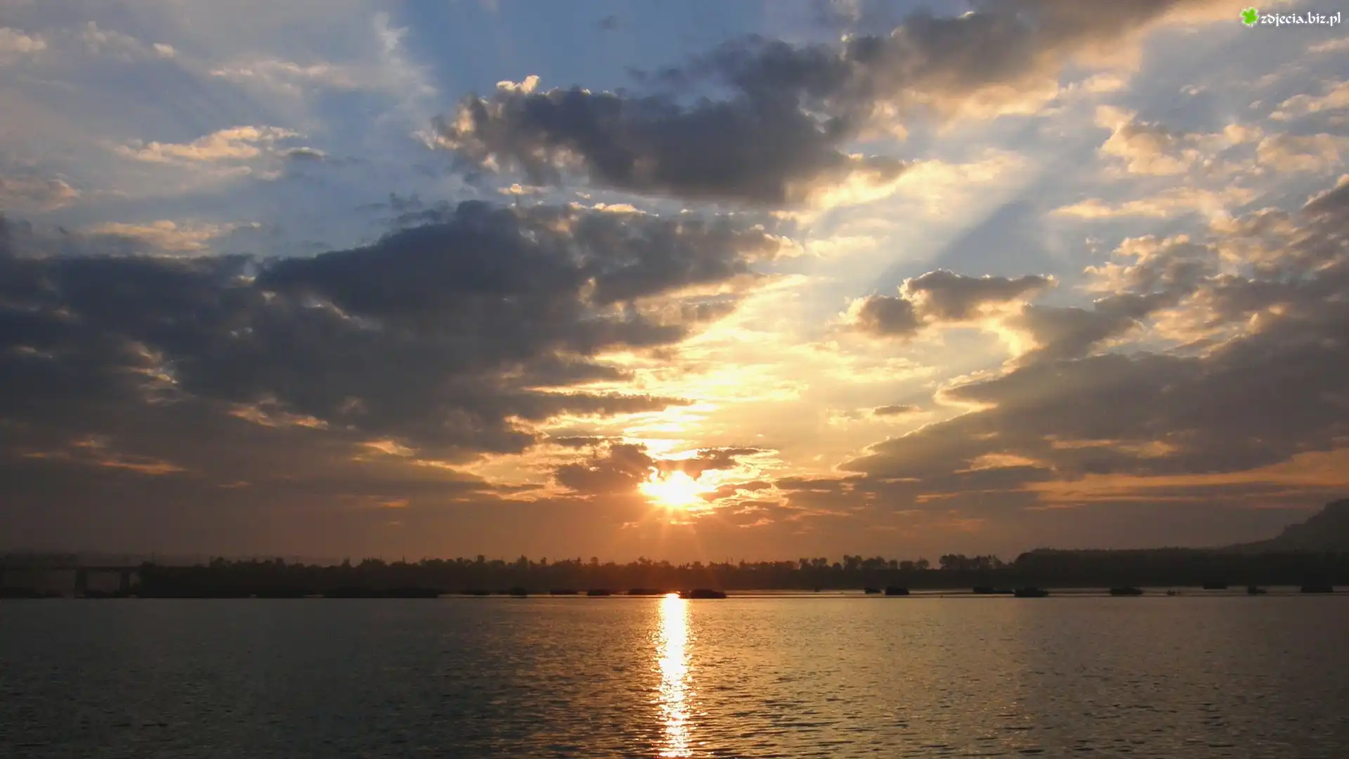 Zdjęcie Zachód, Słońca, Jezioro, Ciemne, Chmury