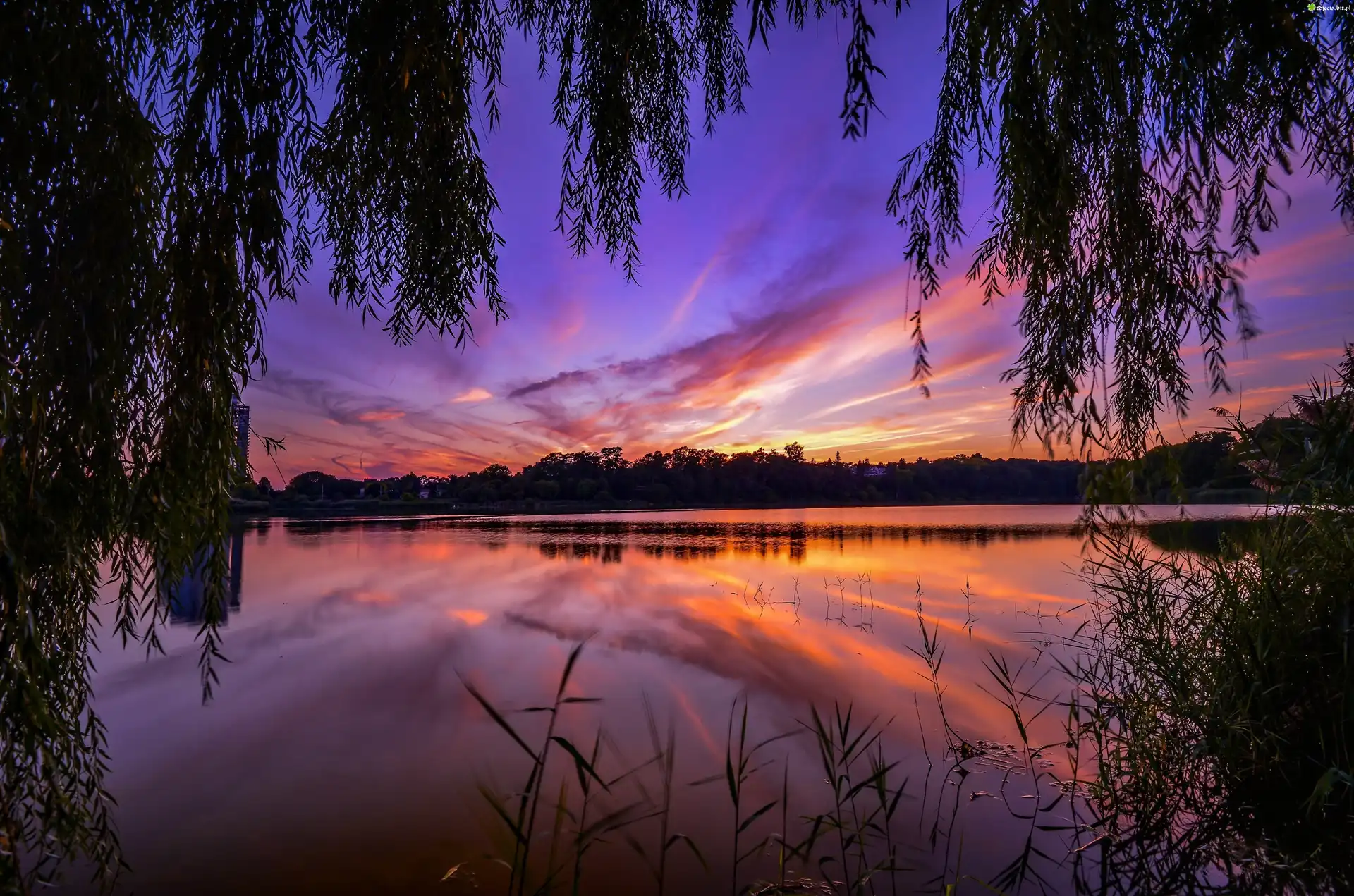 Zdjęcie Zachód Słońca, Rzeka, Gałęzie Drzew