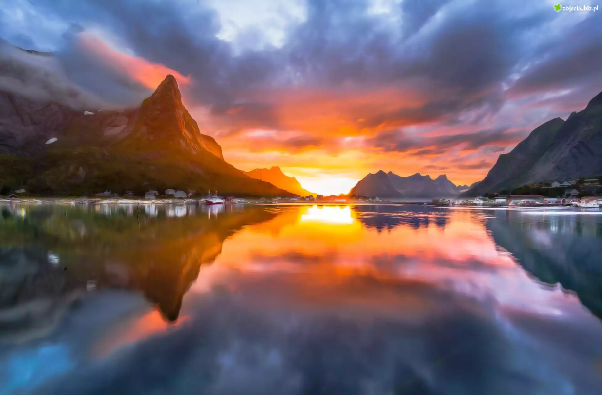 Zdjęcie Zachód, Słońca, Jezioro, Góry, Odbicie
