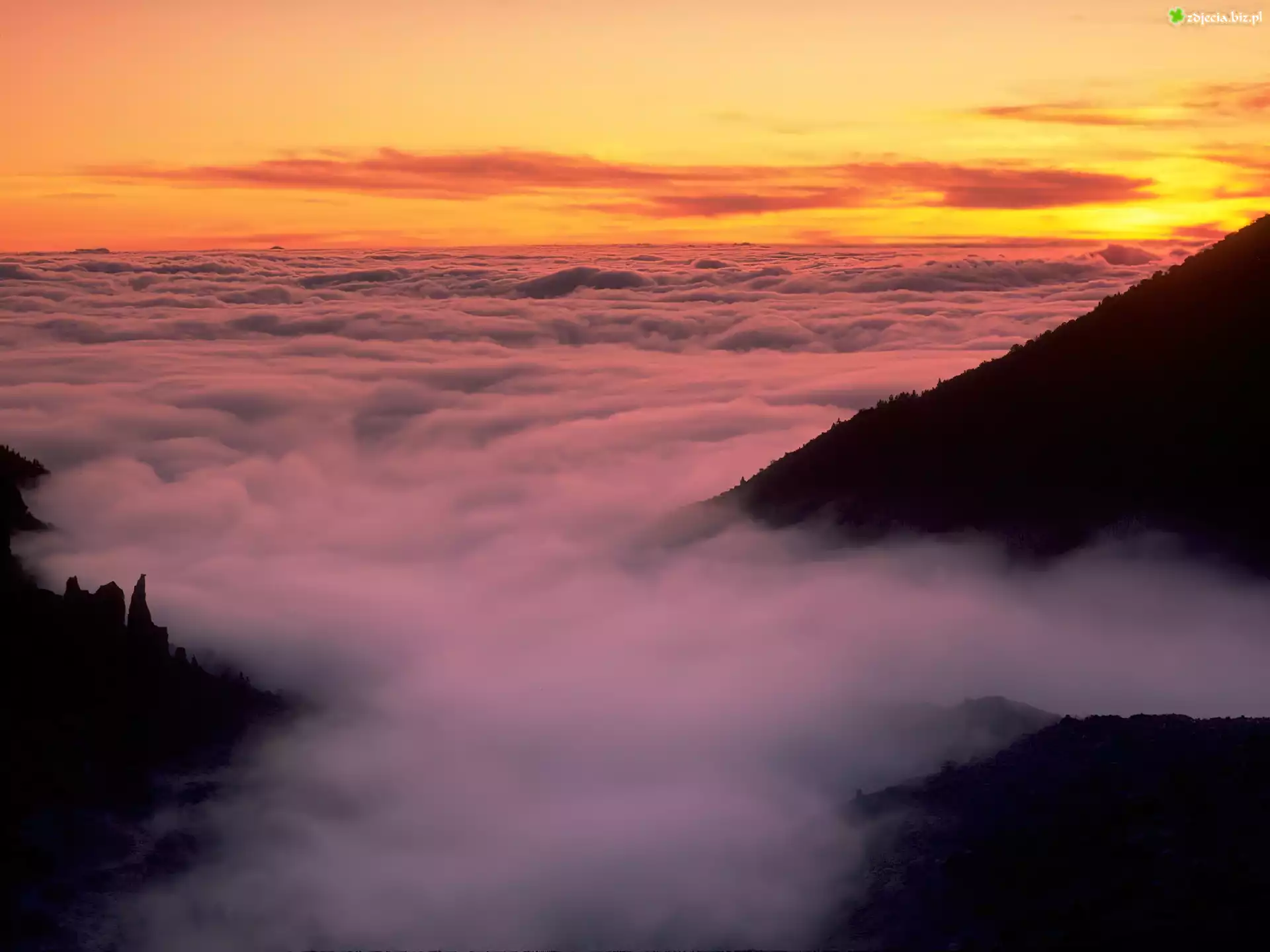 Zdjęcie Zachód, Słońca, Mgła, Góry, Teneryfa