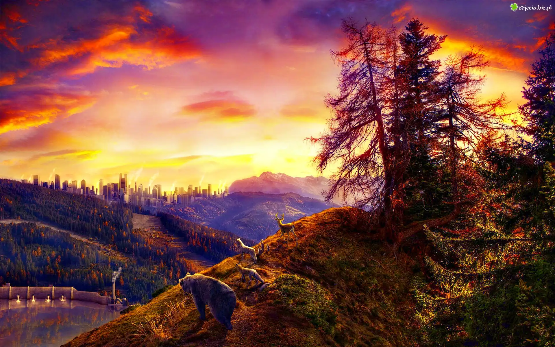 Zdjęcie Zachód, Słońca, Góry, Drzewa